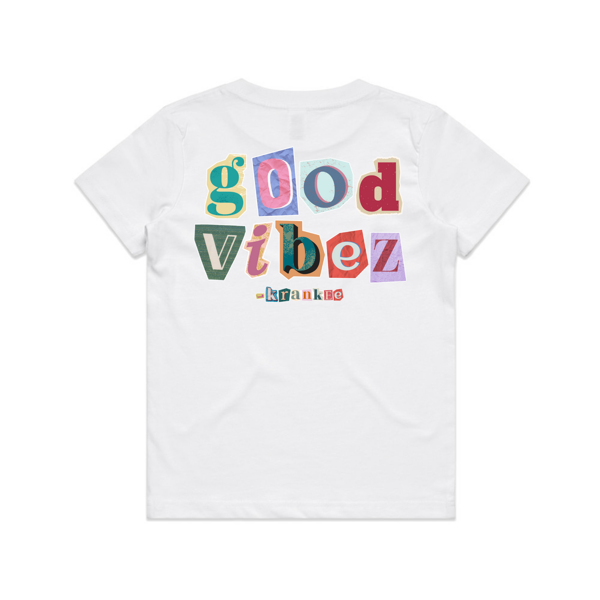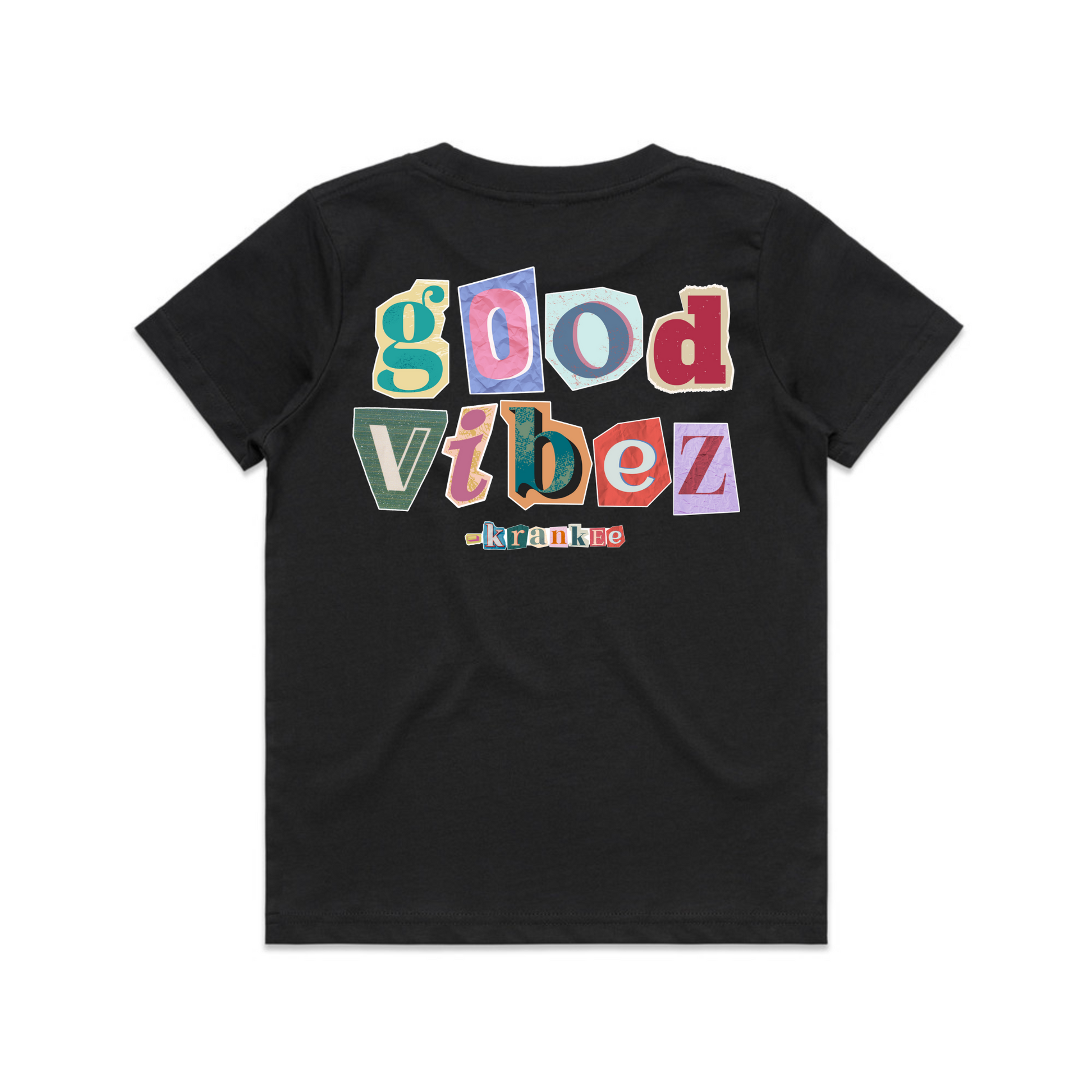 Large Krankee good vibez design on the back, mini chest one on the front.