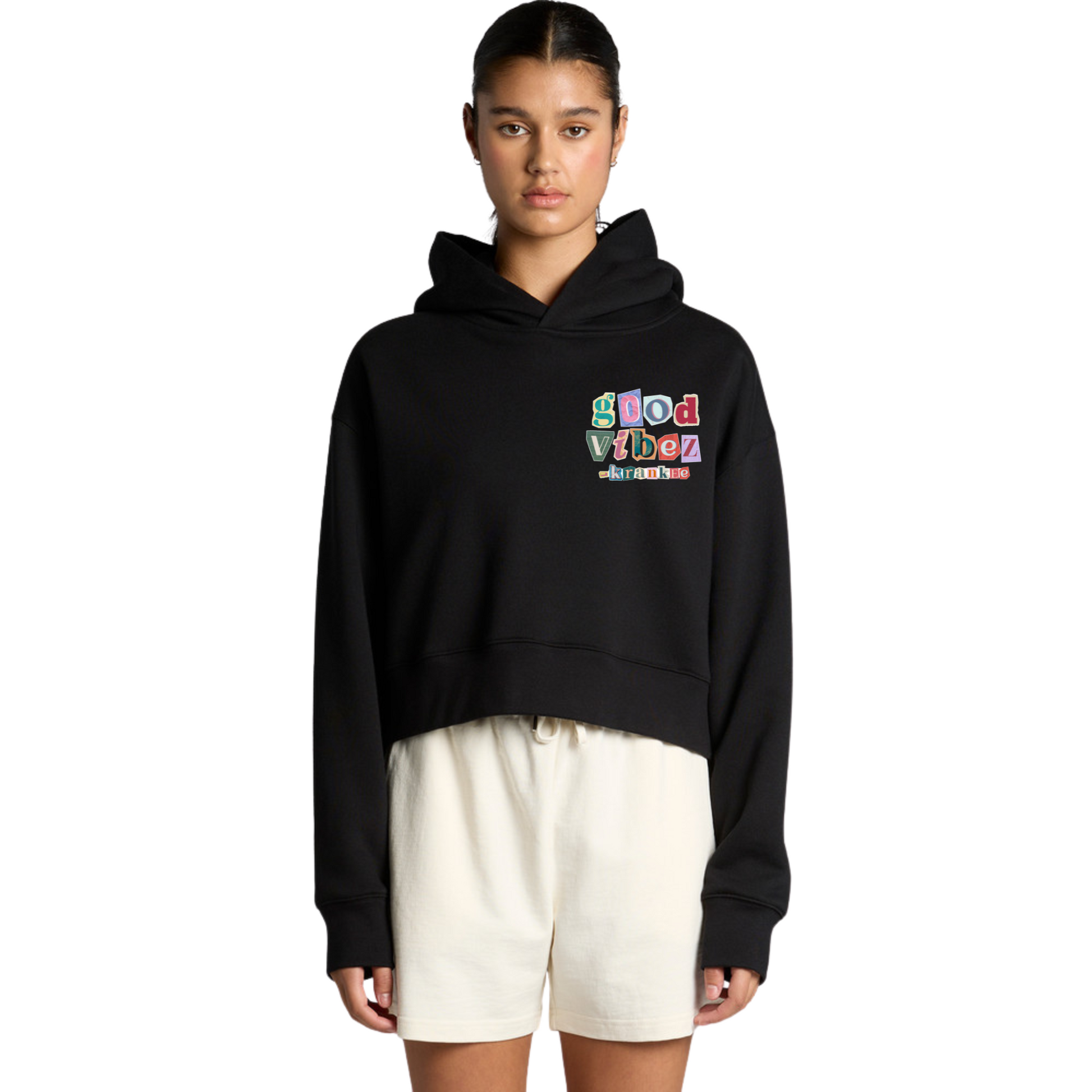 Large Krankee good vibez design on the back, mini chest one on the front.