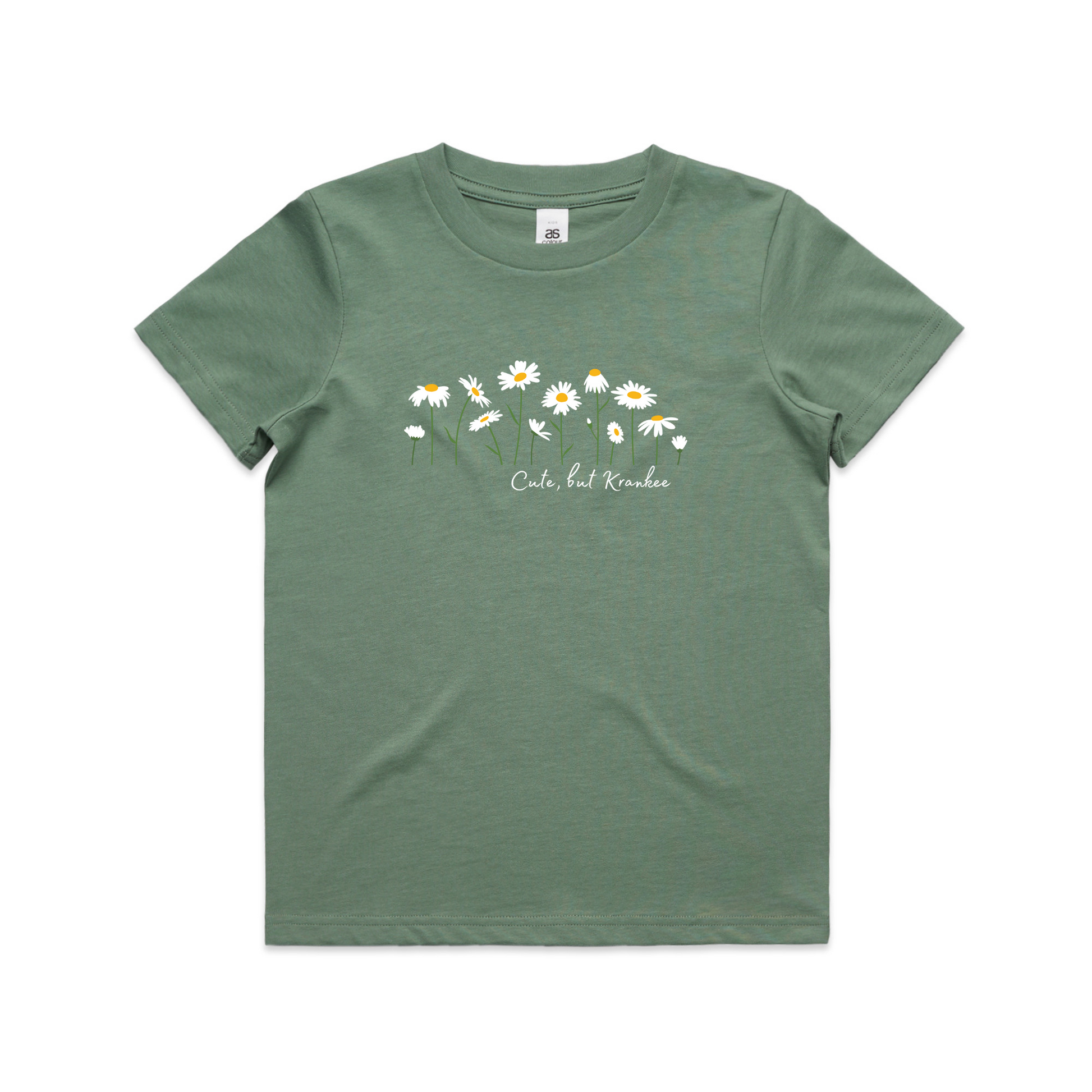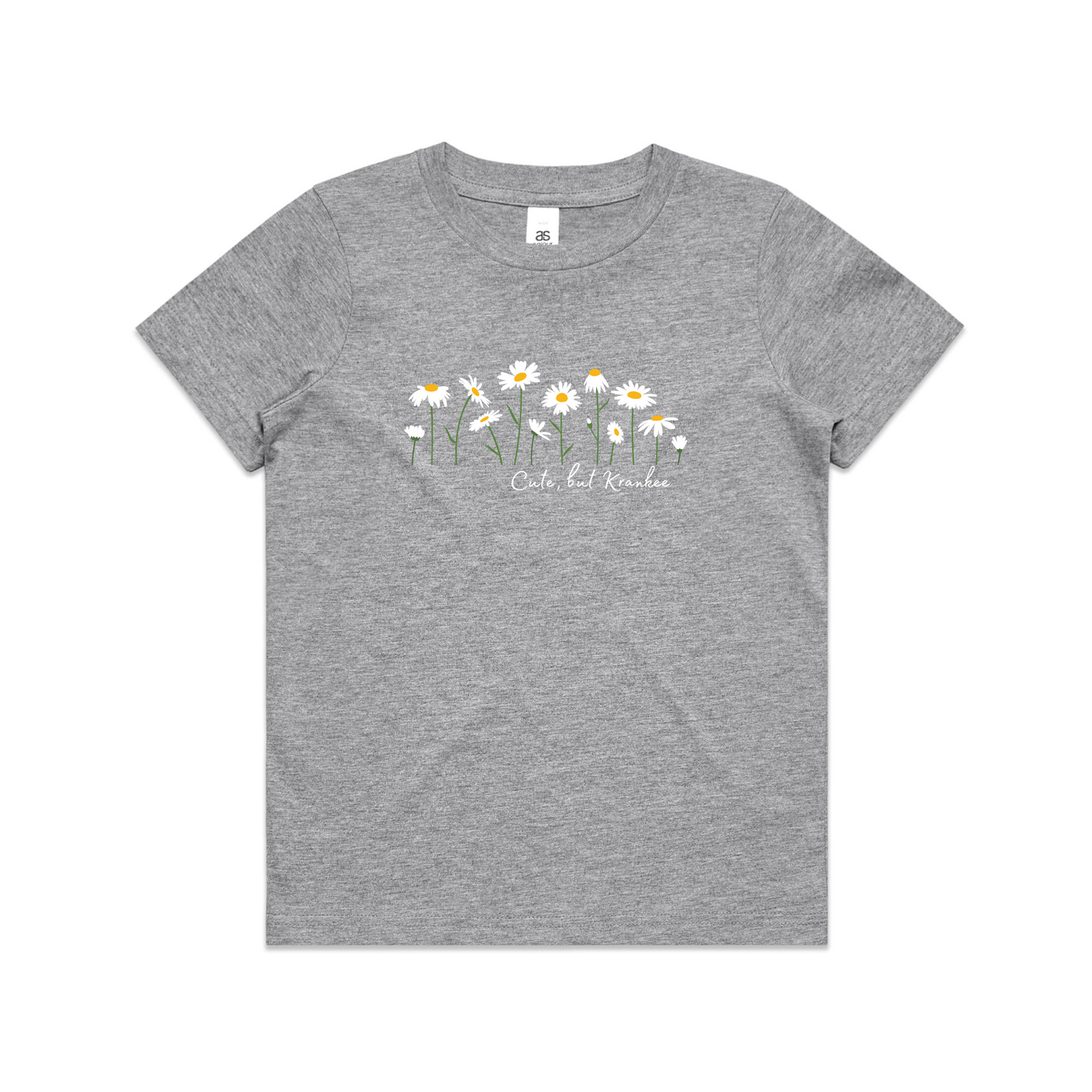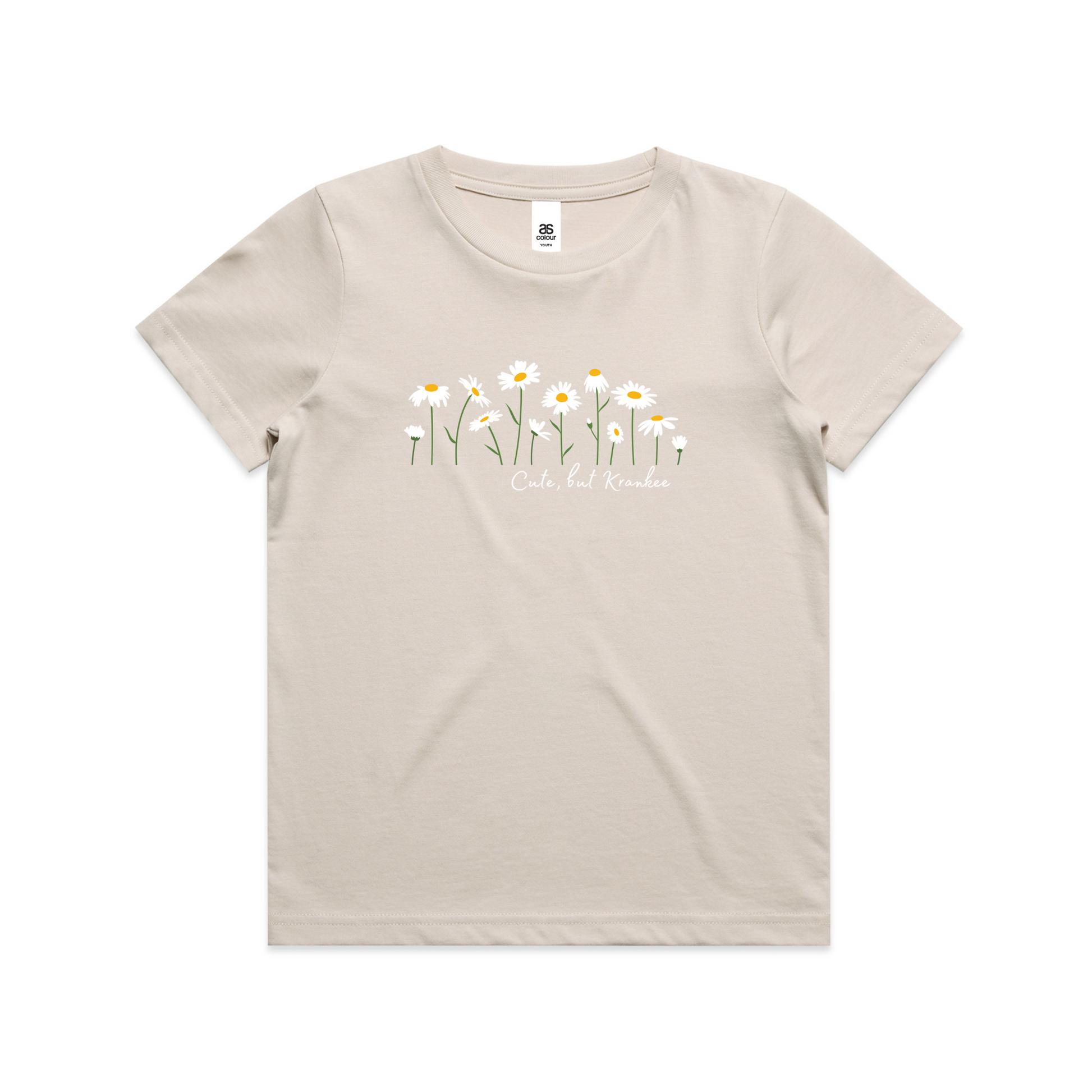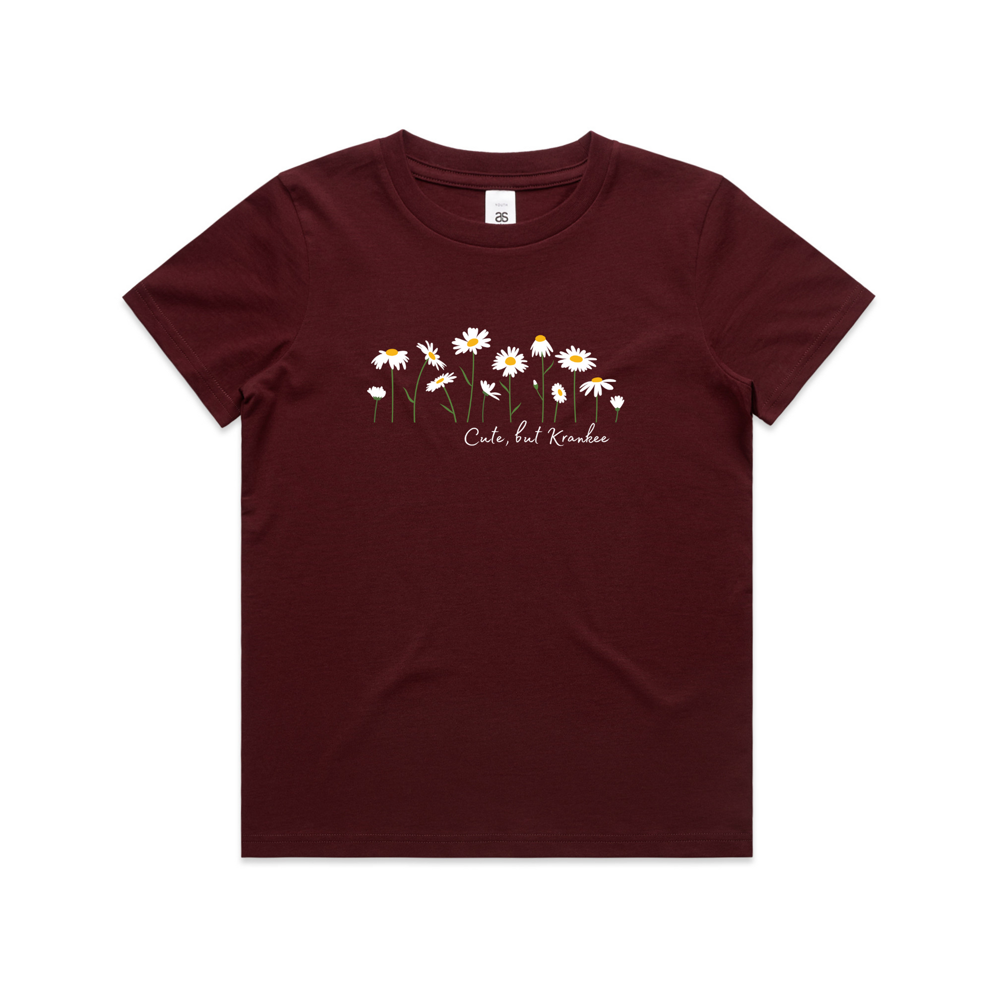 "Cute but Krankee" Daisy design on the front, with nothing on the back.