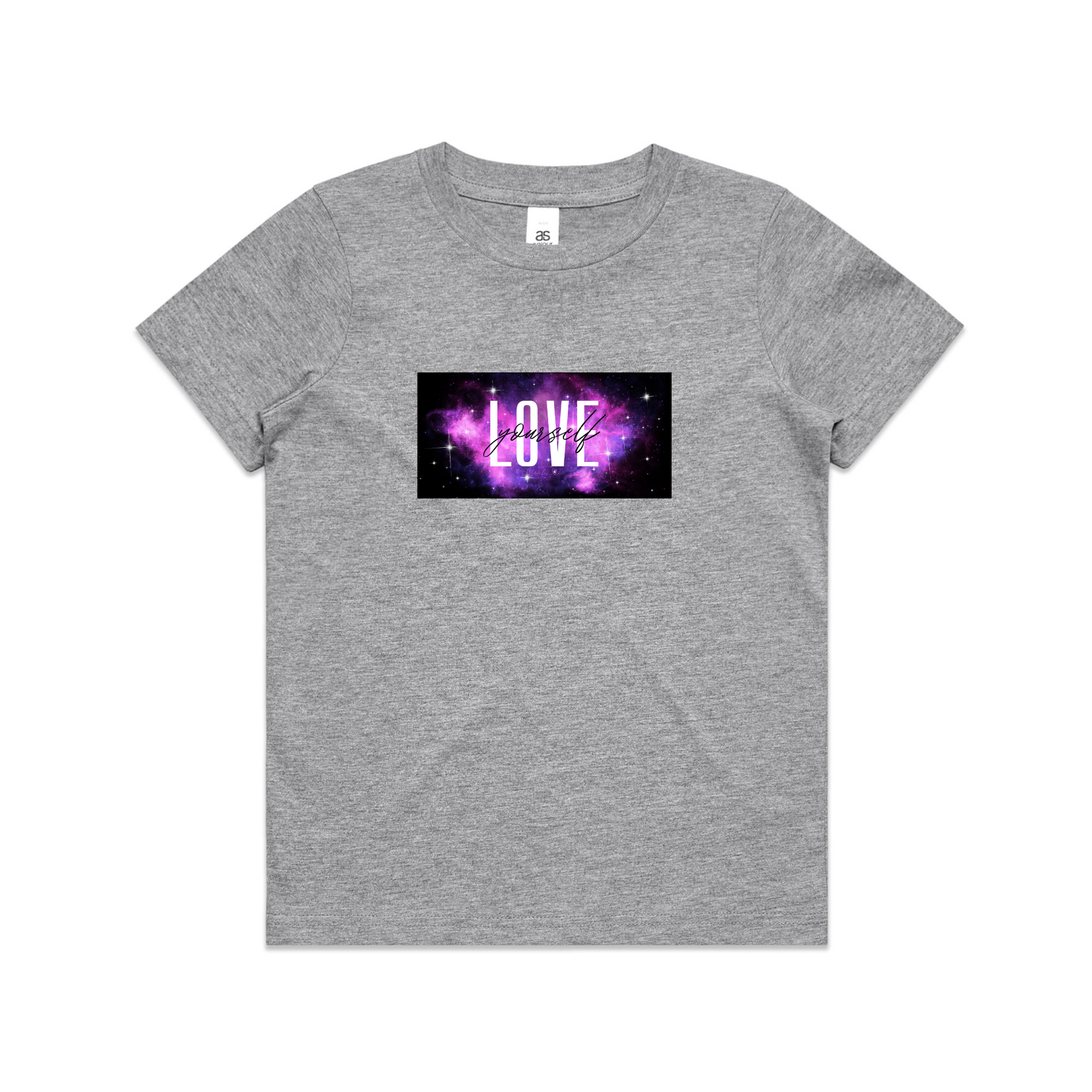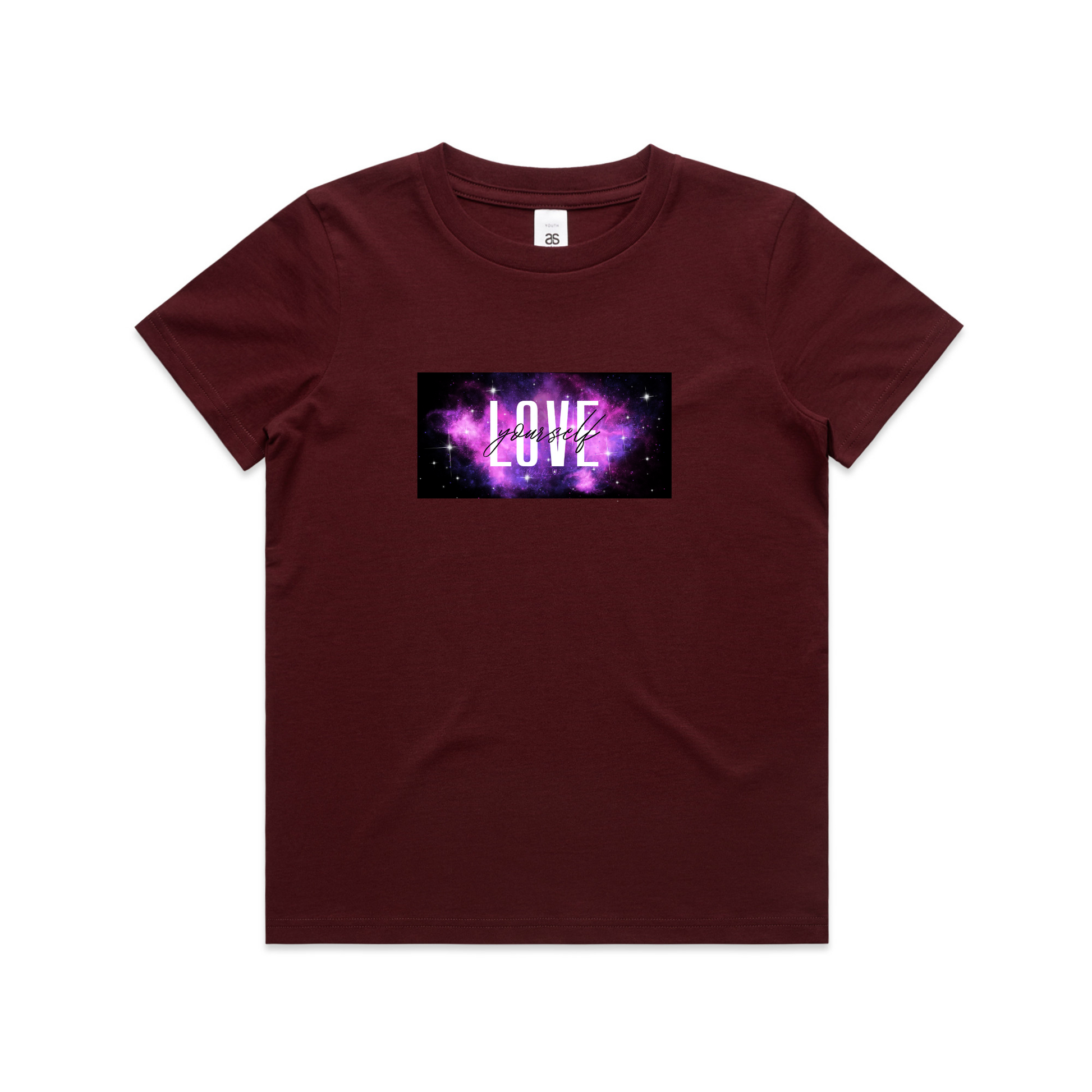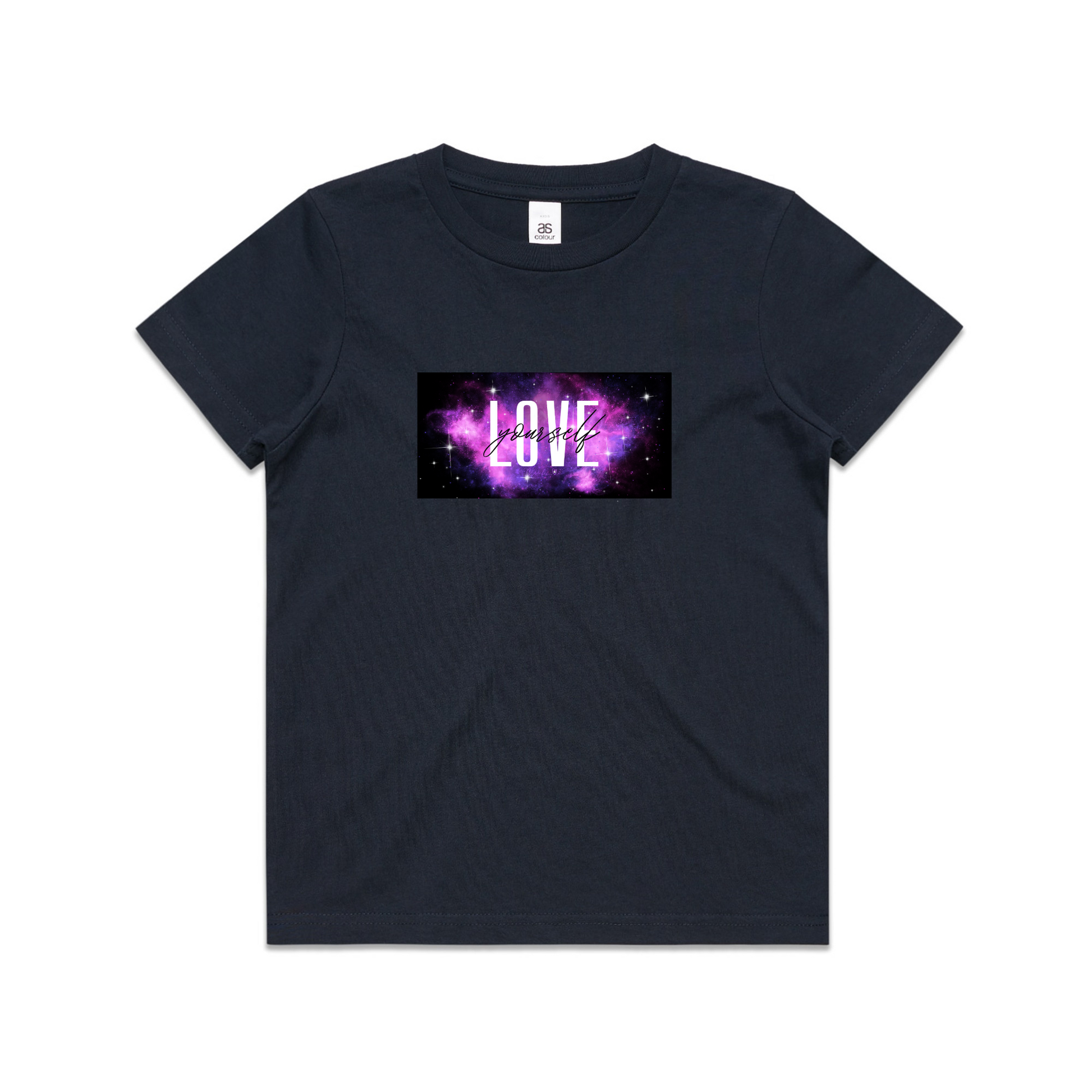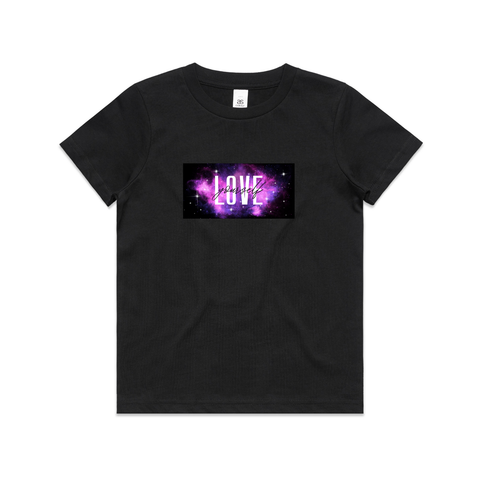 Vibrant "love yourself" galaxy design on the front - nothing on the back.