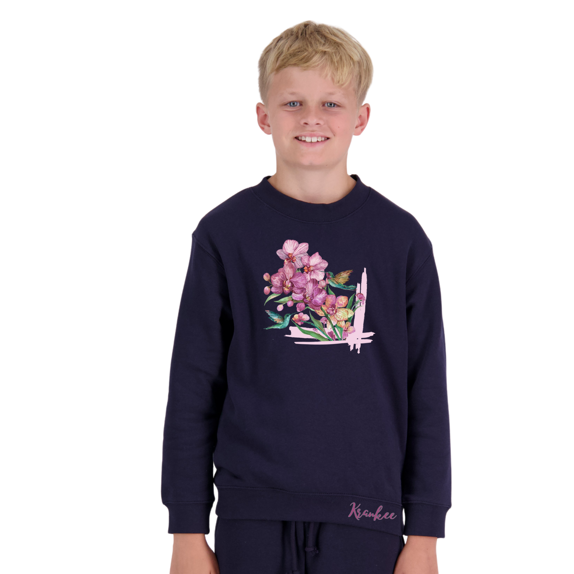 Vibrant, floral orchid & hummingbird design on the front with nothing on the back.