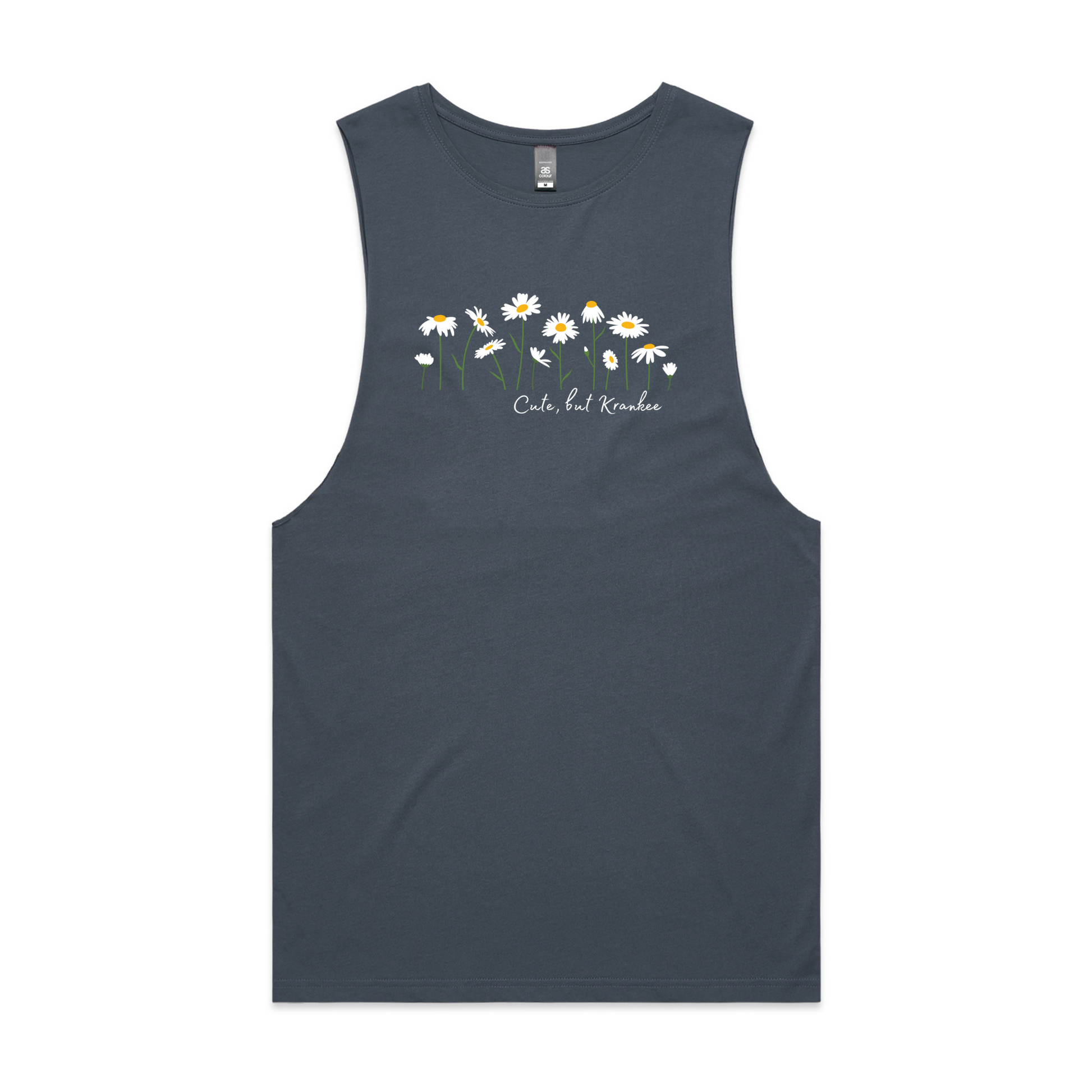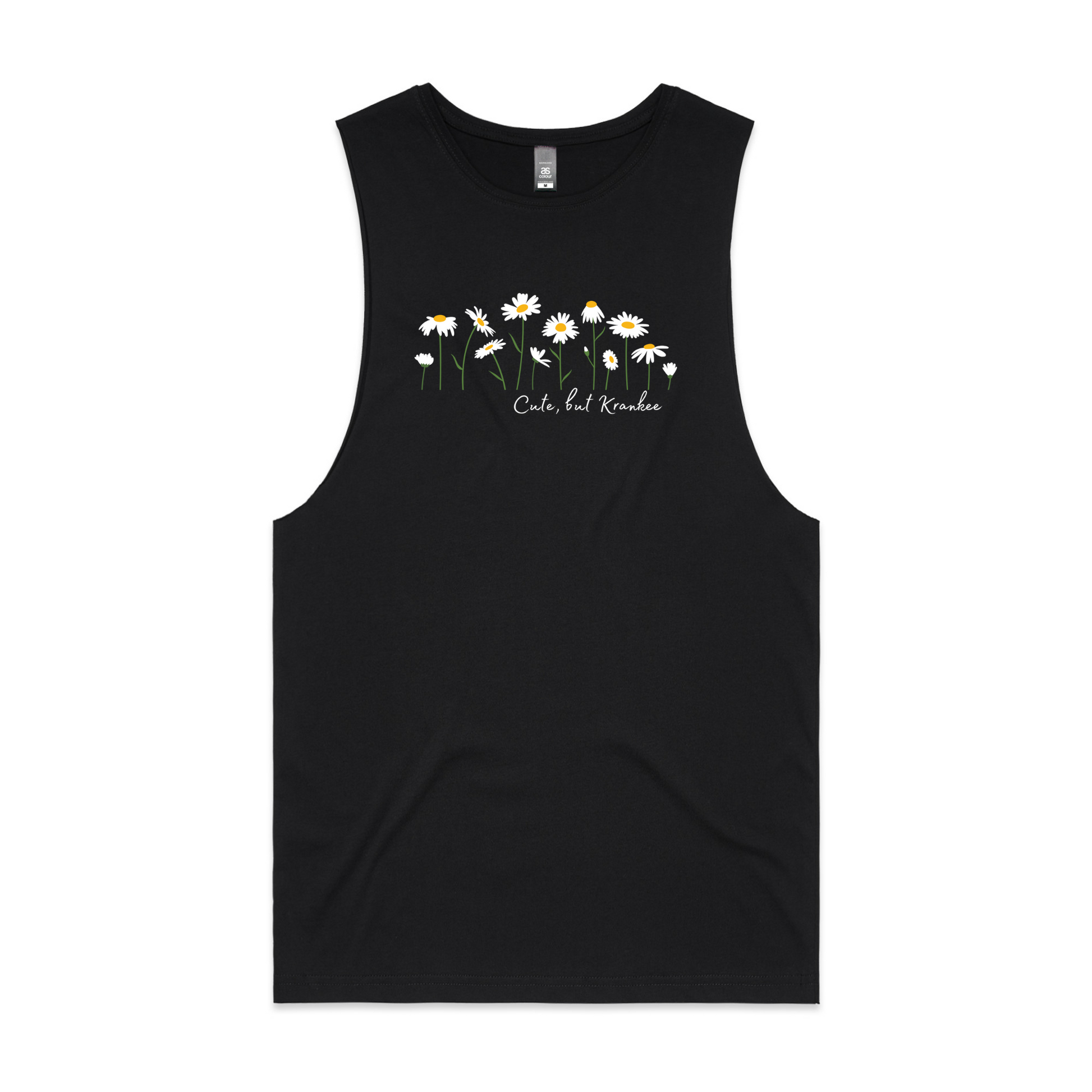 "Cute but Krankee" Daisy design on the front, with nothing on the back.