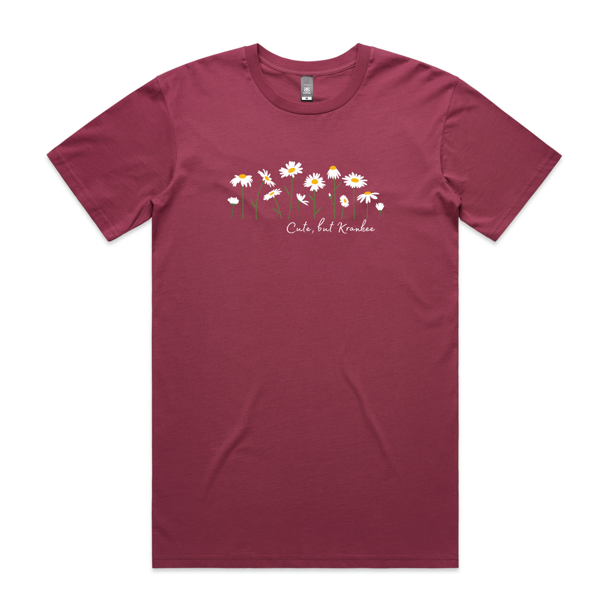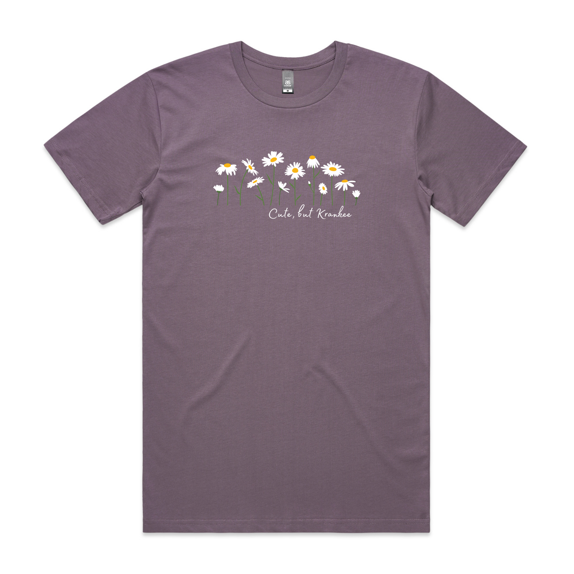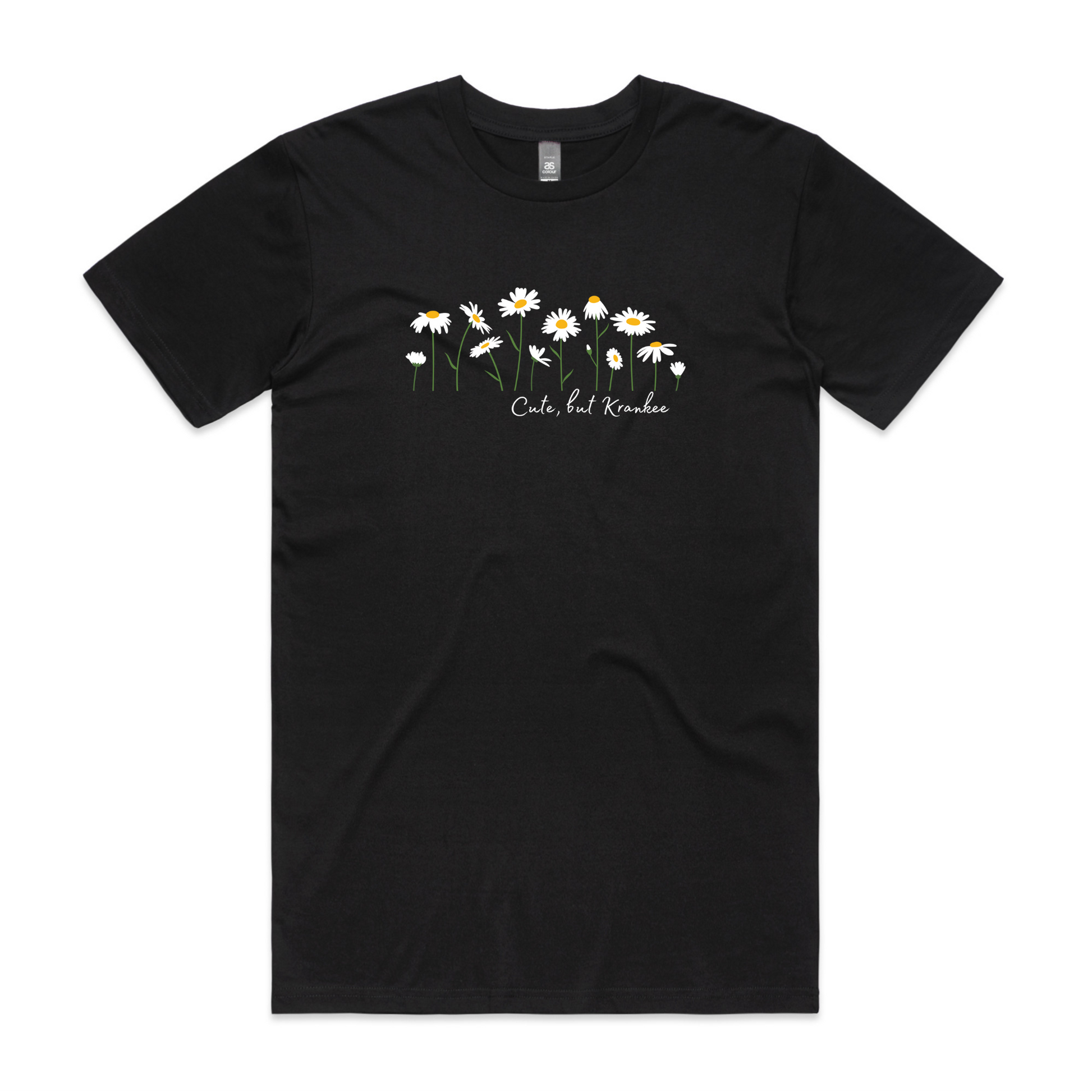 "Cute but Krankee" Daisy design on the front, with nothing on the back.