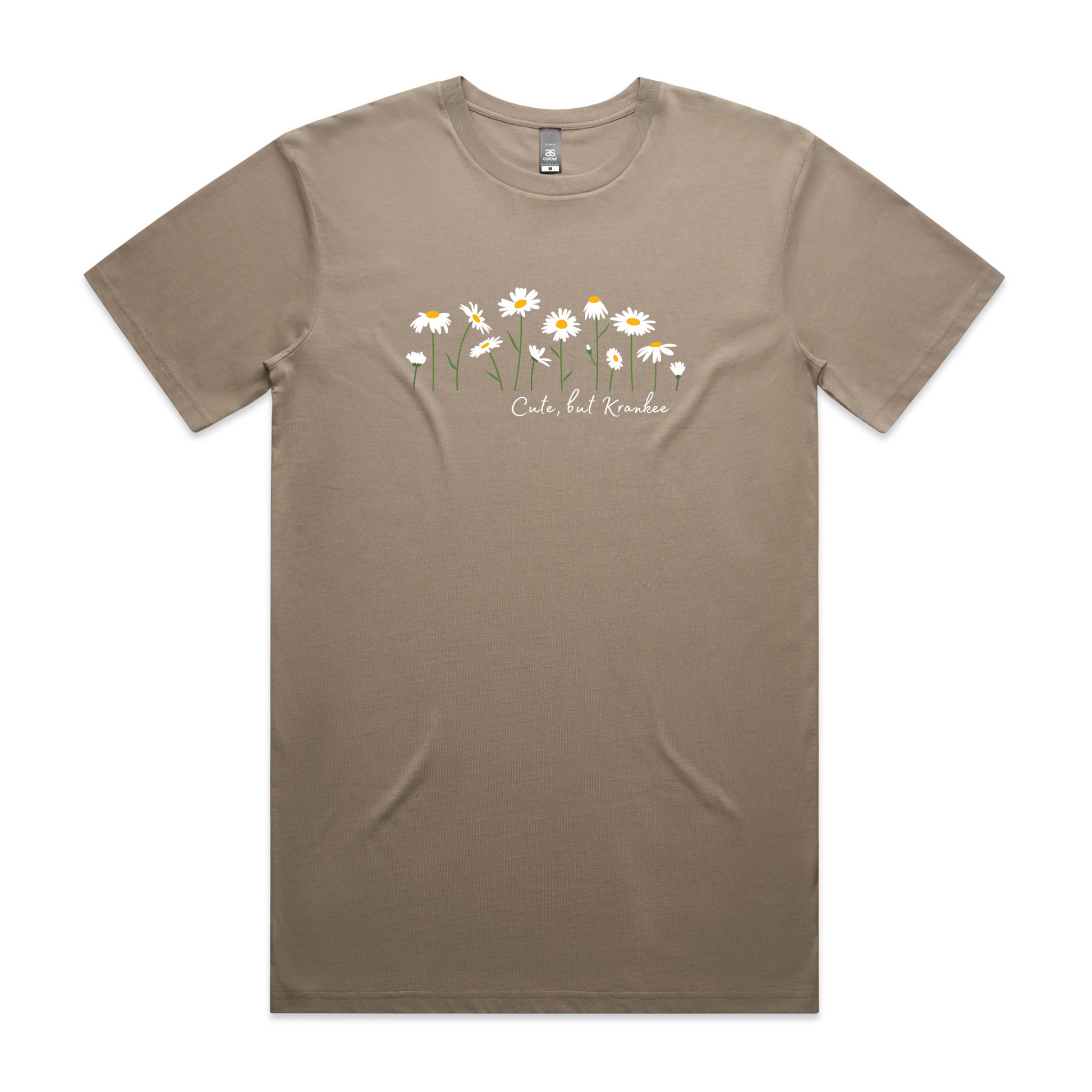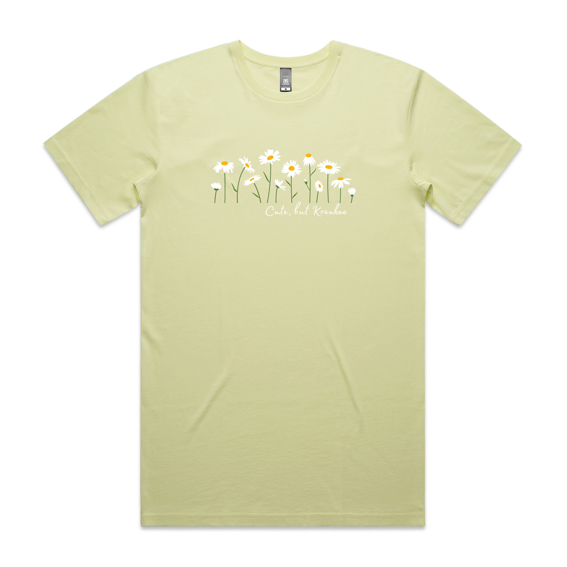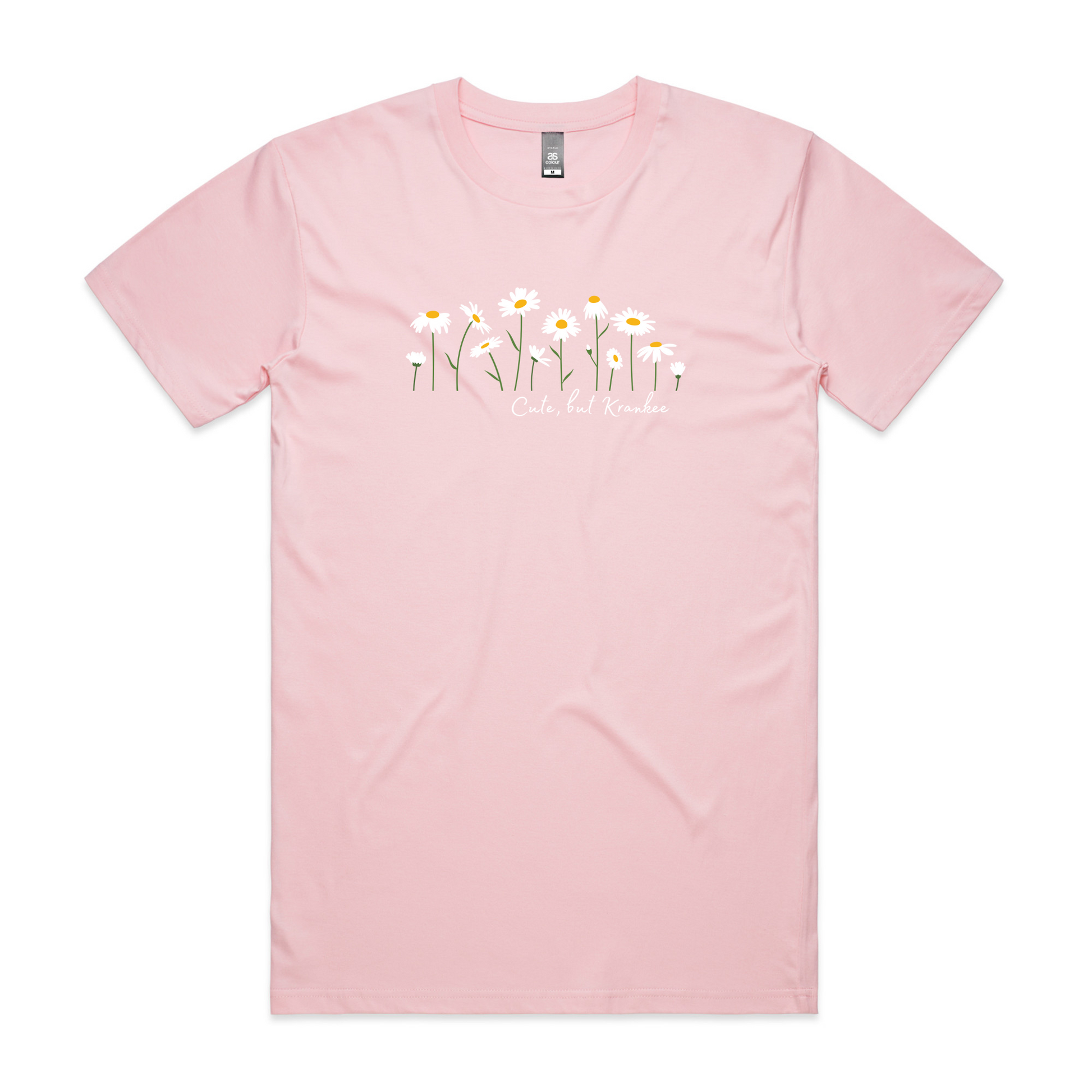 "Cute but Krankee" Daisy design on the front, with nothing on the back.