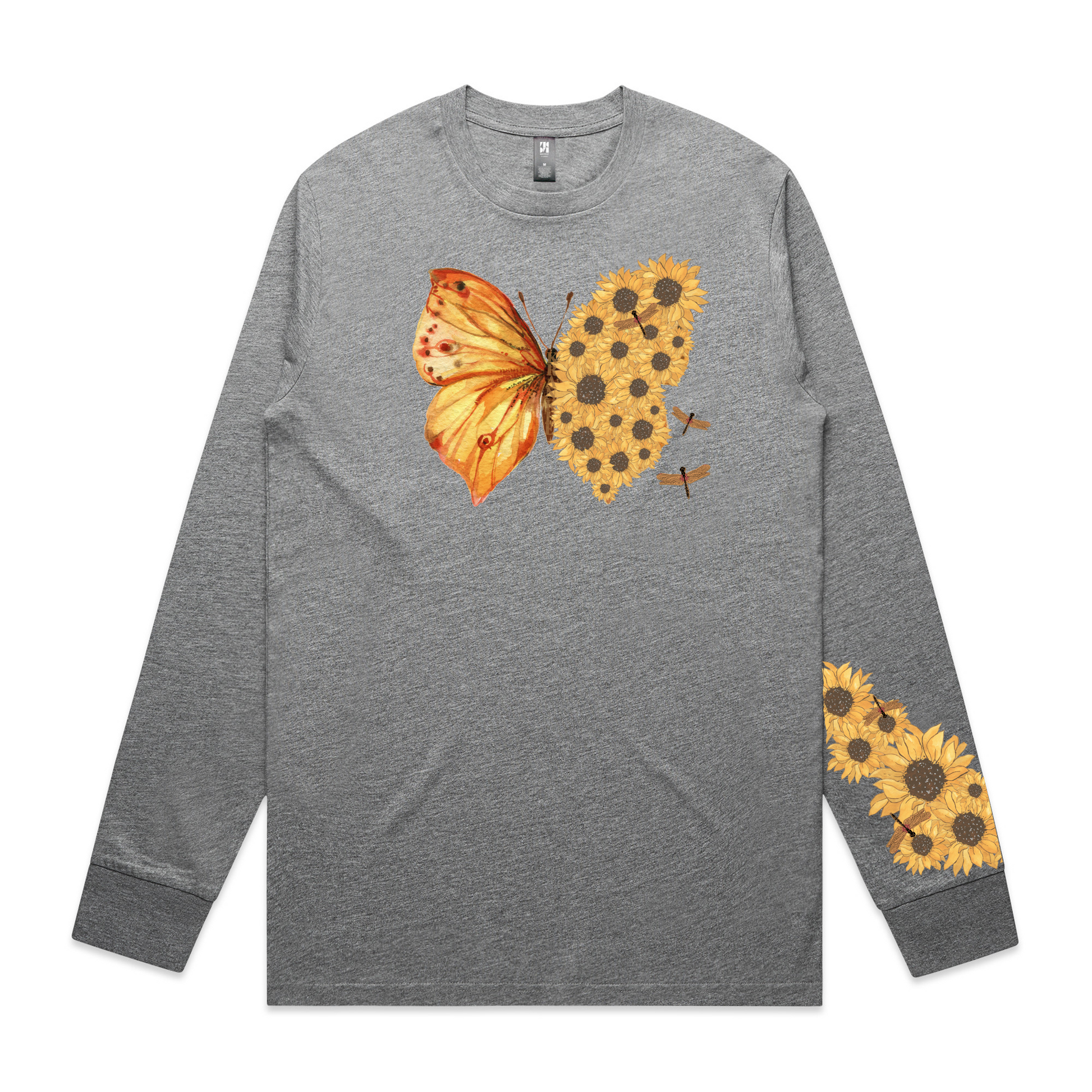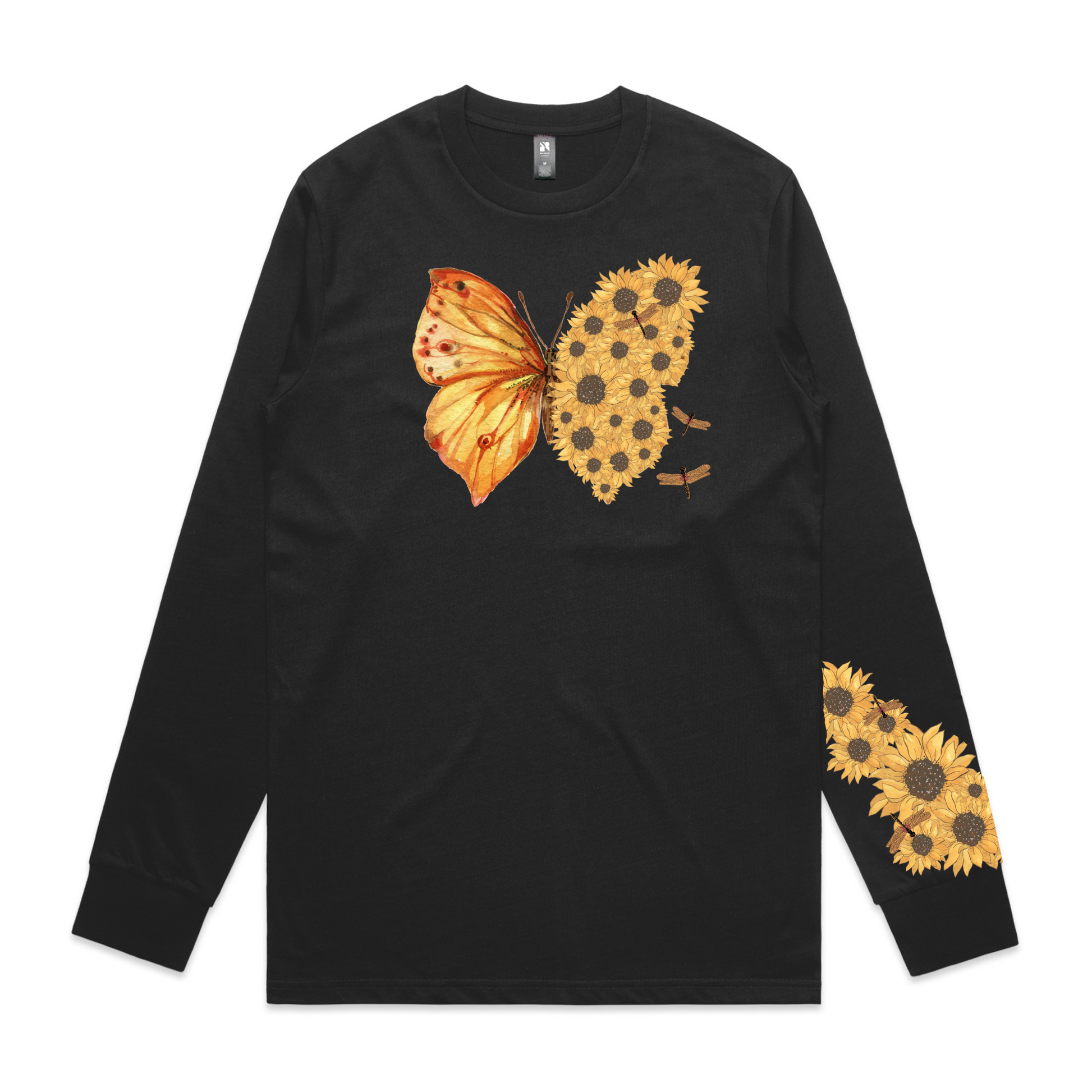 Butterfly/Sunflower design on the front, with a matching sleeve design.