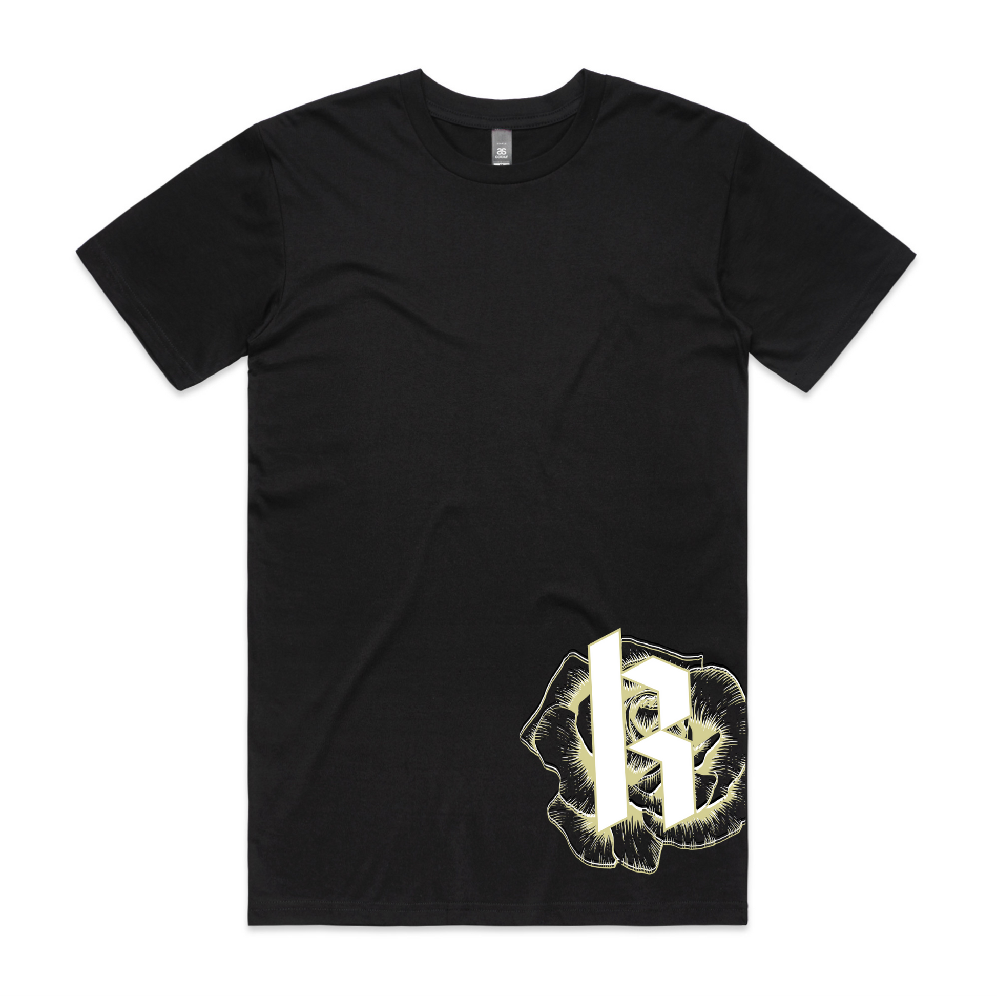 Metallic K/Rose logo design on the front - the gold being metallic, with nothing on the back.