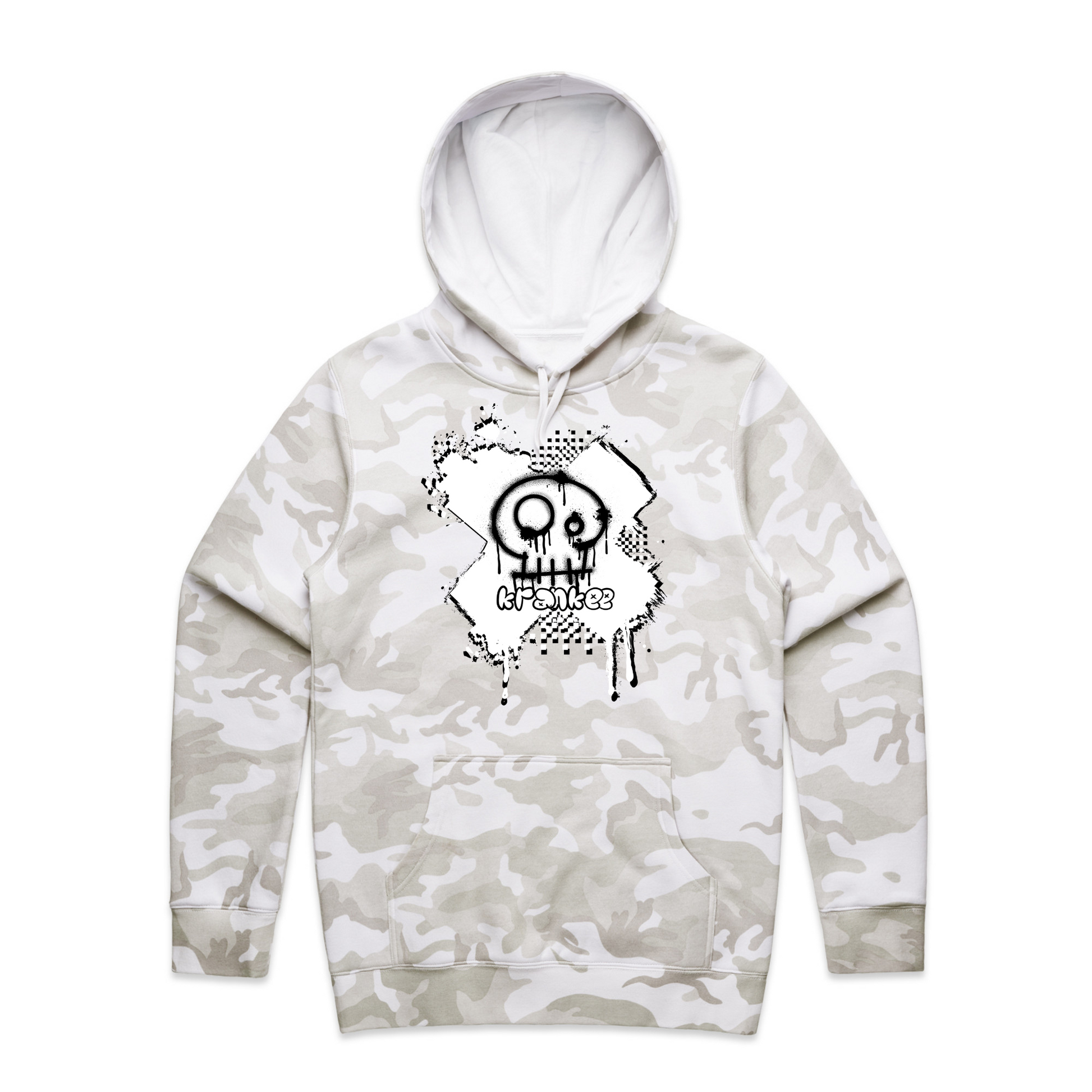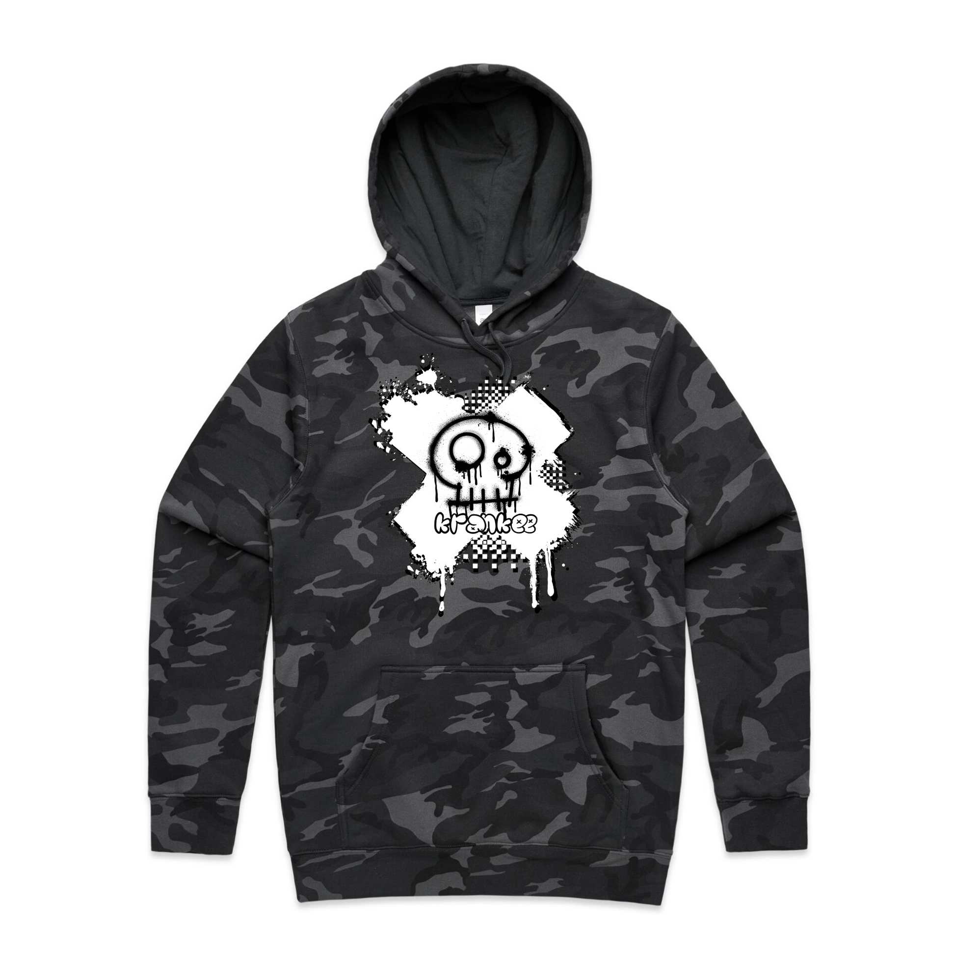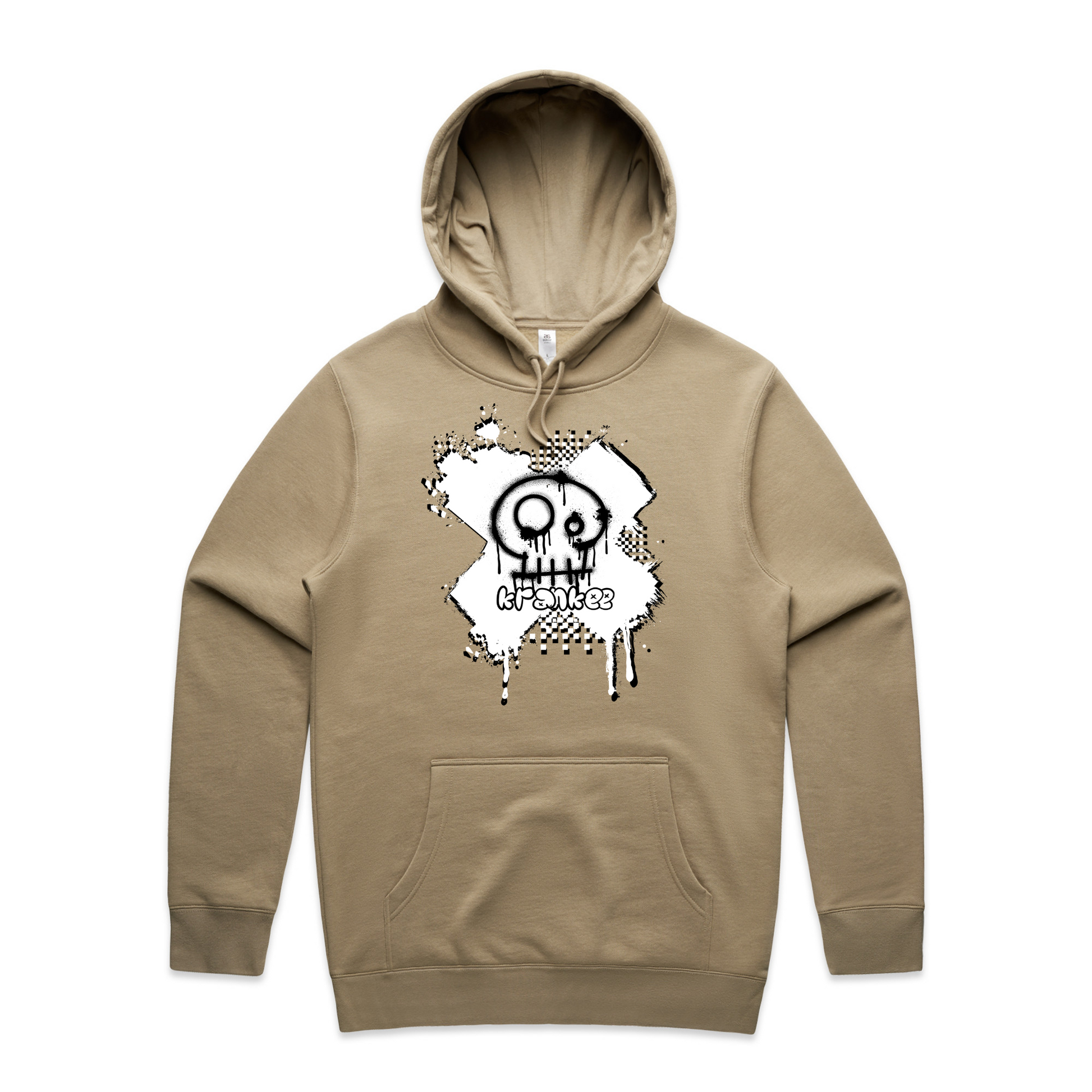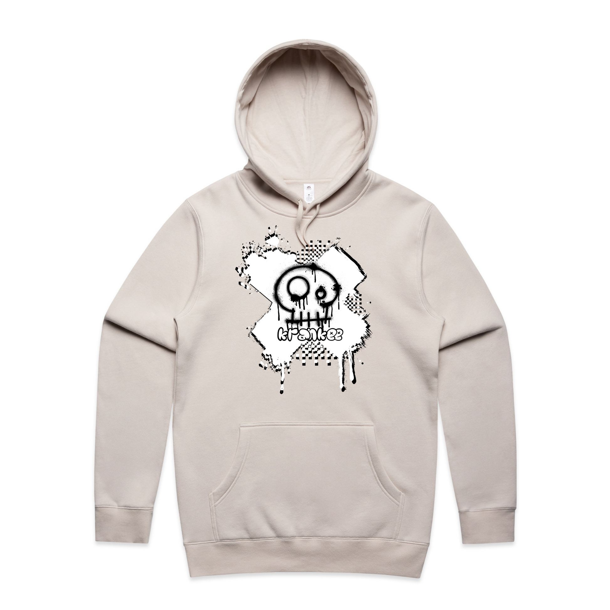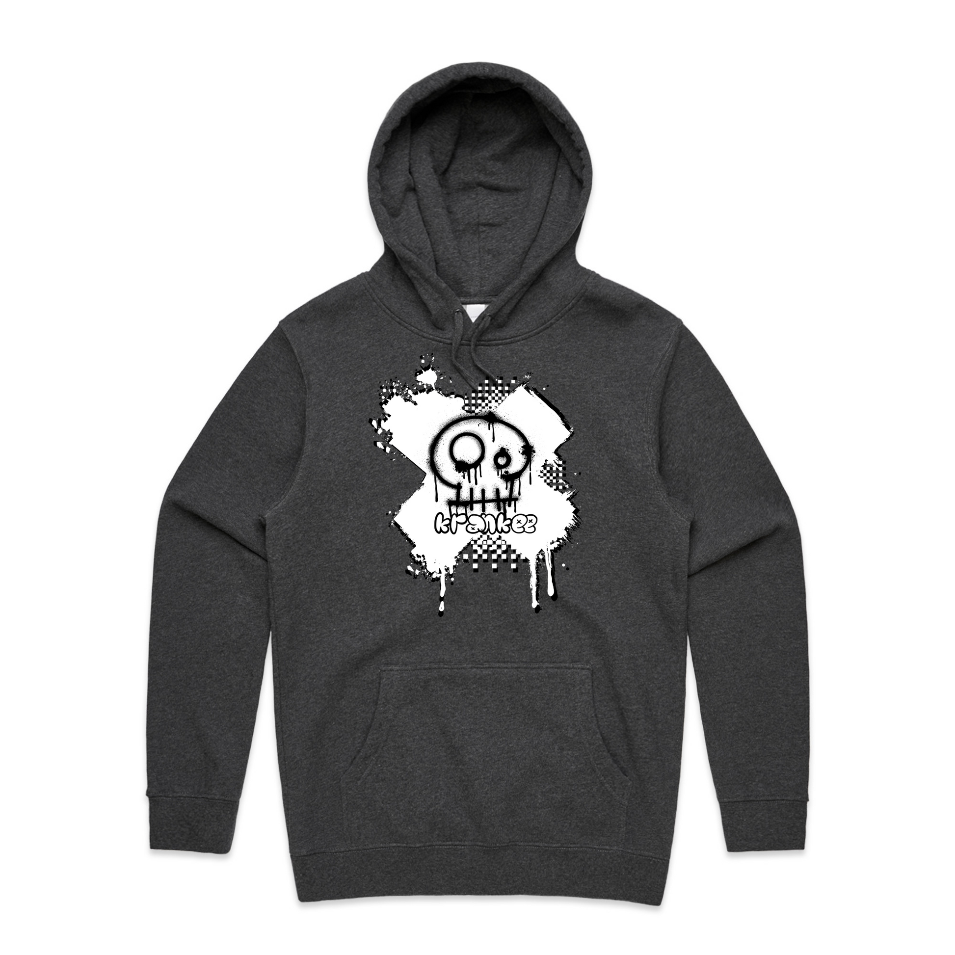Spray paint Krankee skull design on the front, with nothing on the back.
