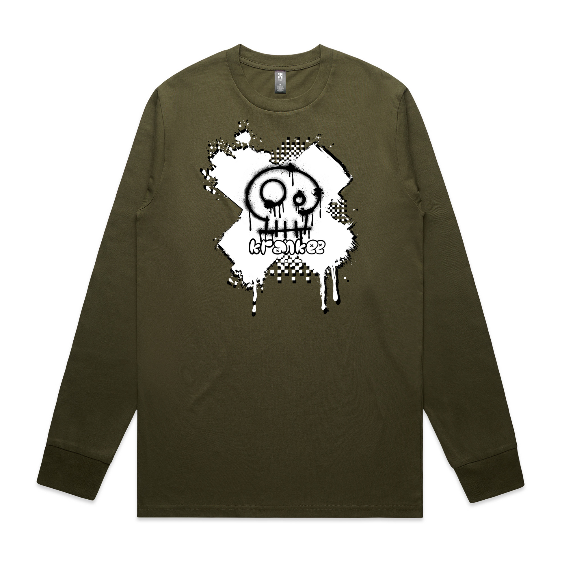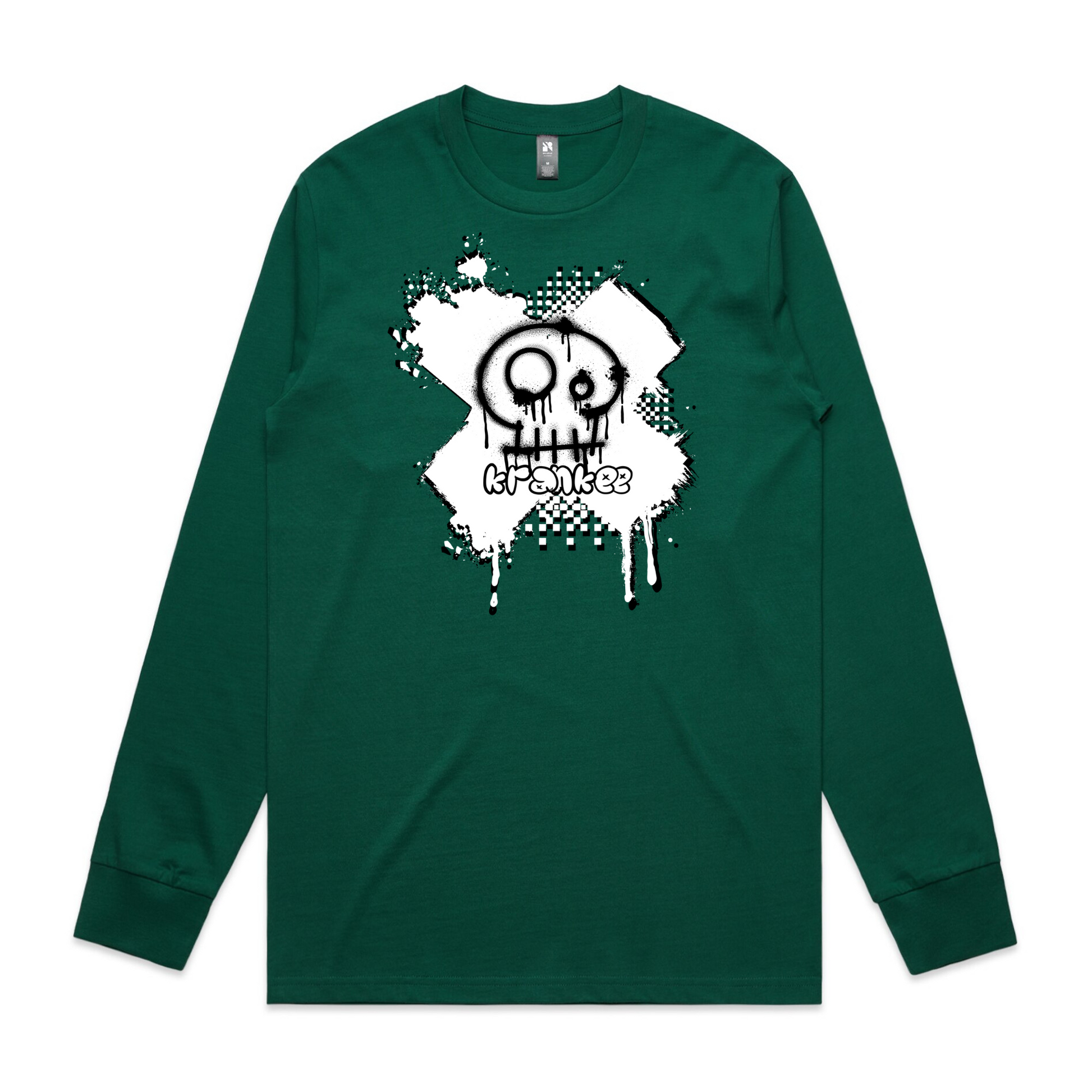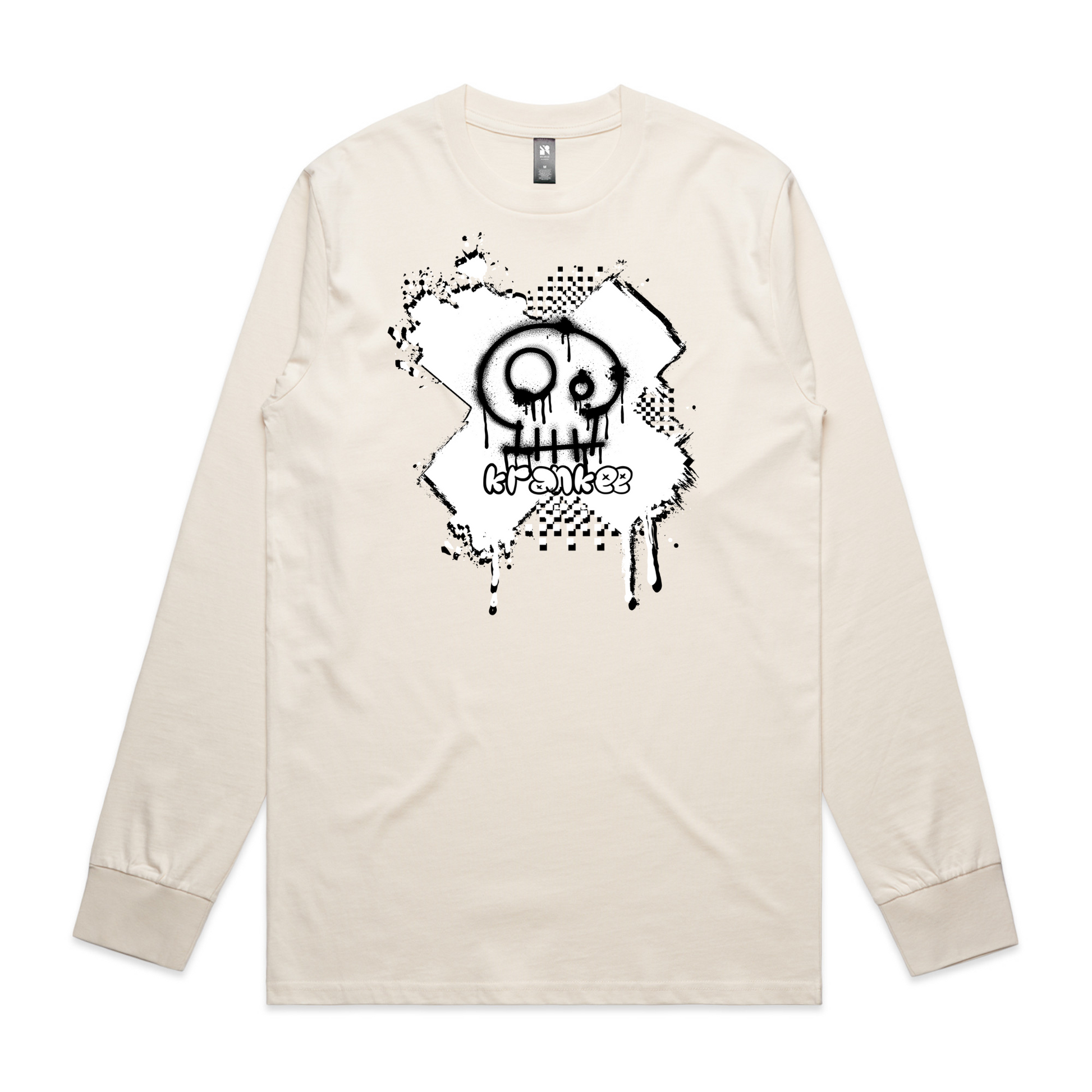 Spray paint Krankee skull design on the front, with nothing on the back.