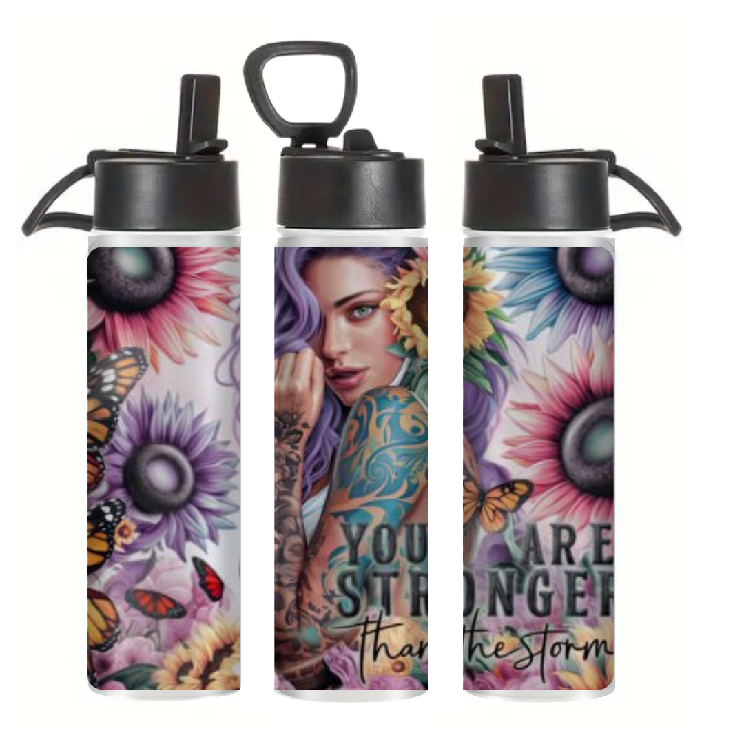 DRINK BOTTLE: Stainless steel insulated drink bottle with a flip up straw style lid.