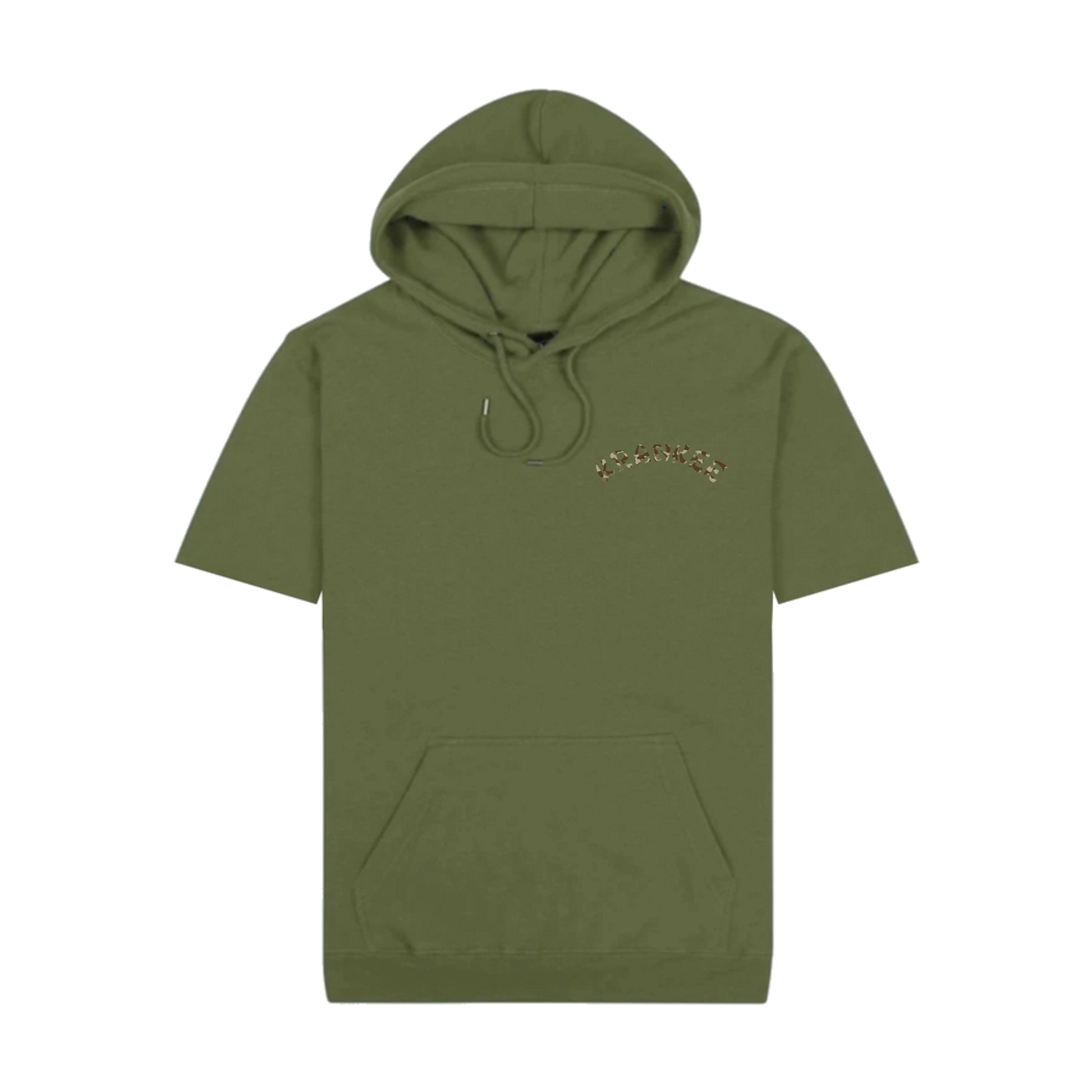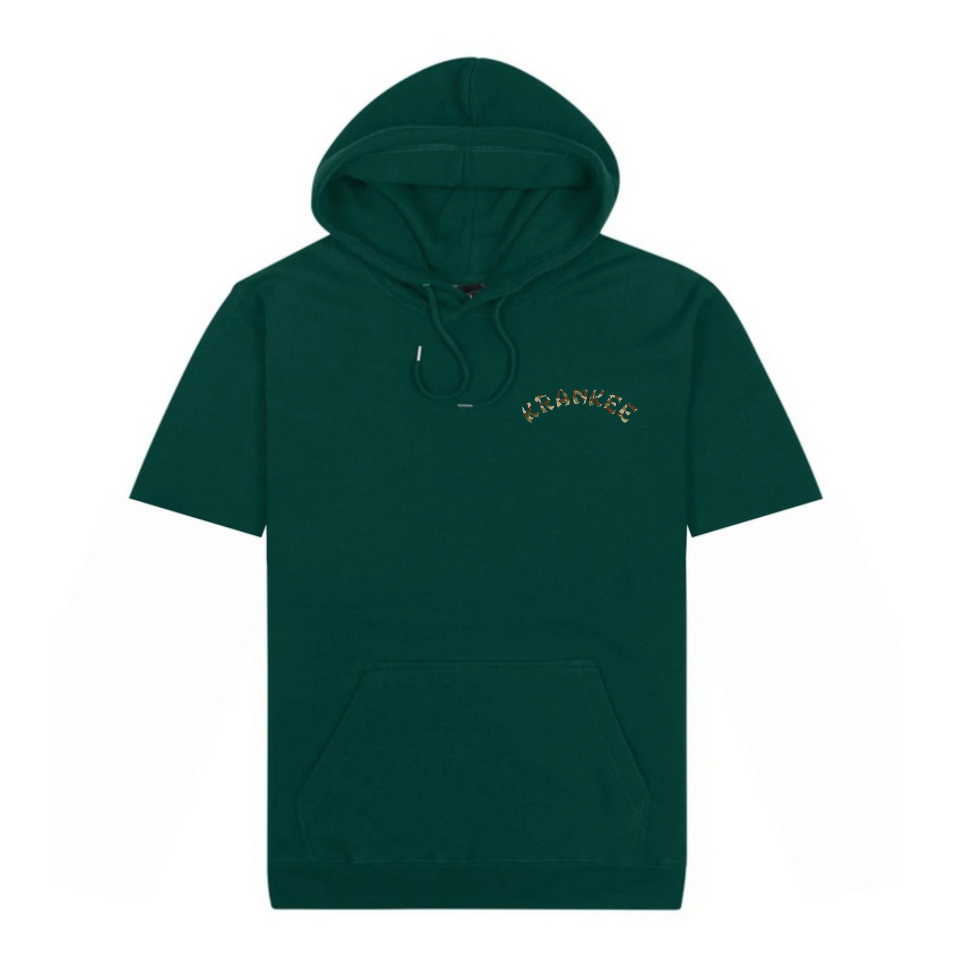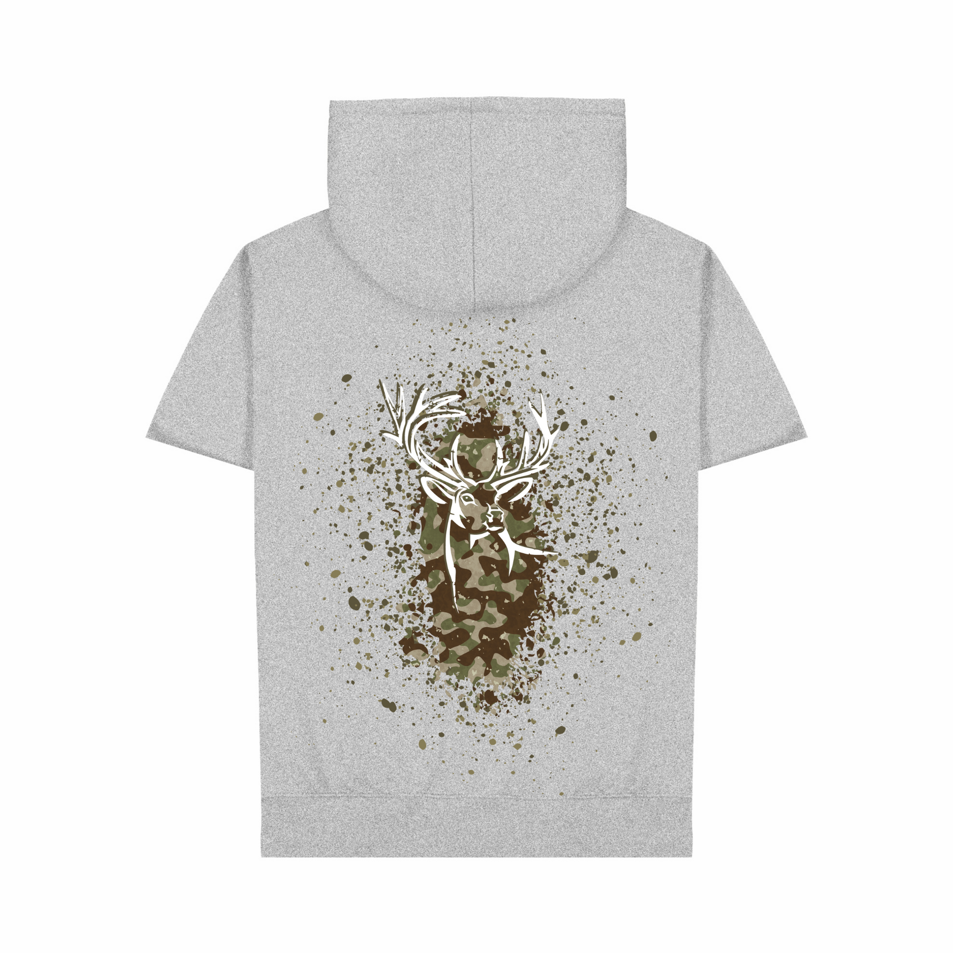 Large camo stag design on the back, with a small camo font "Krankee" on the front