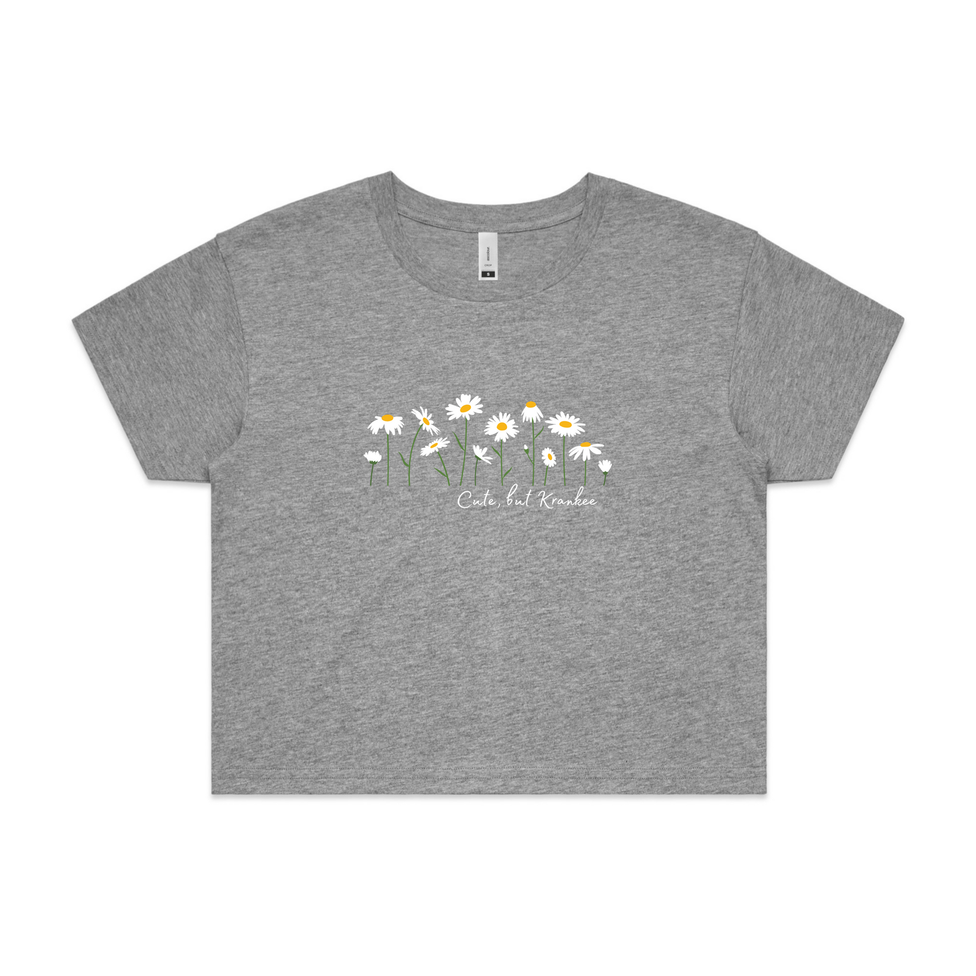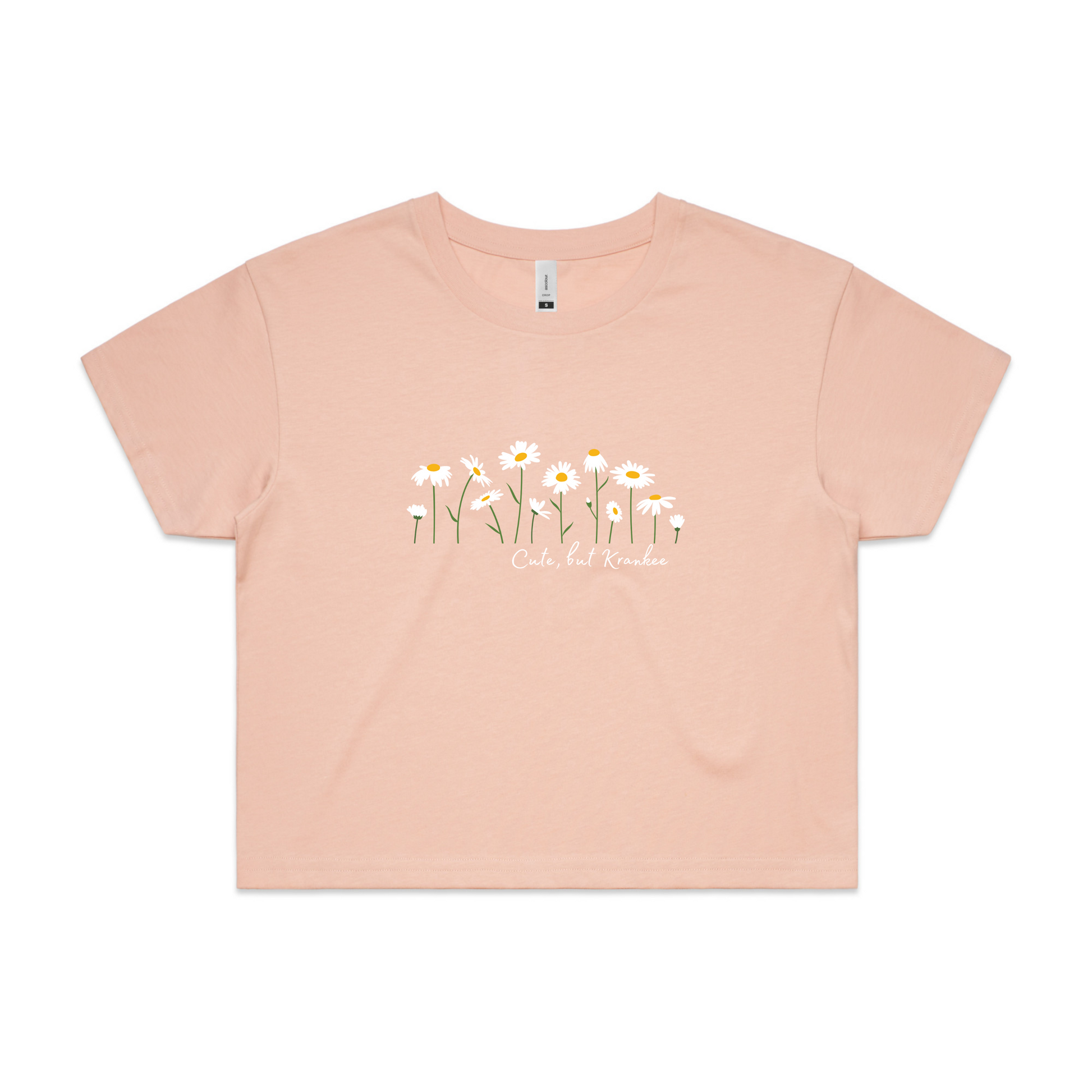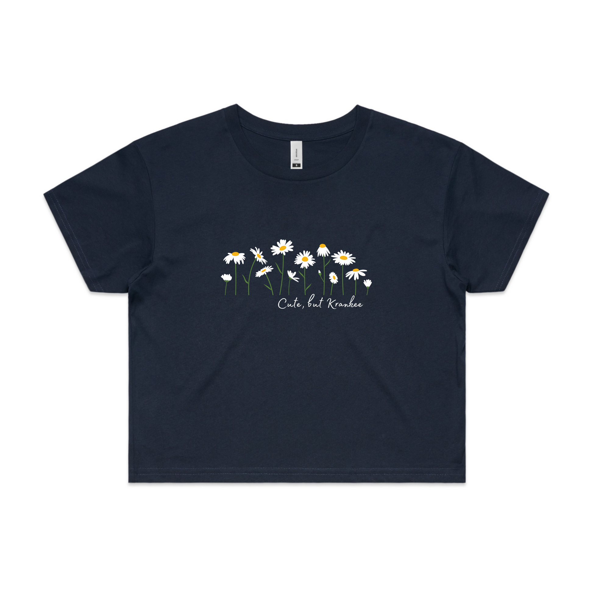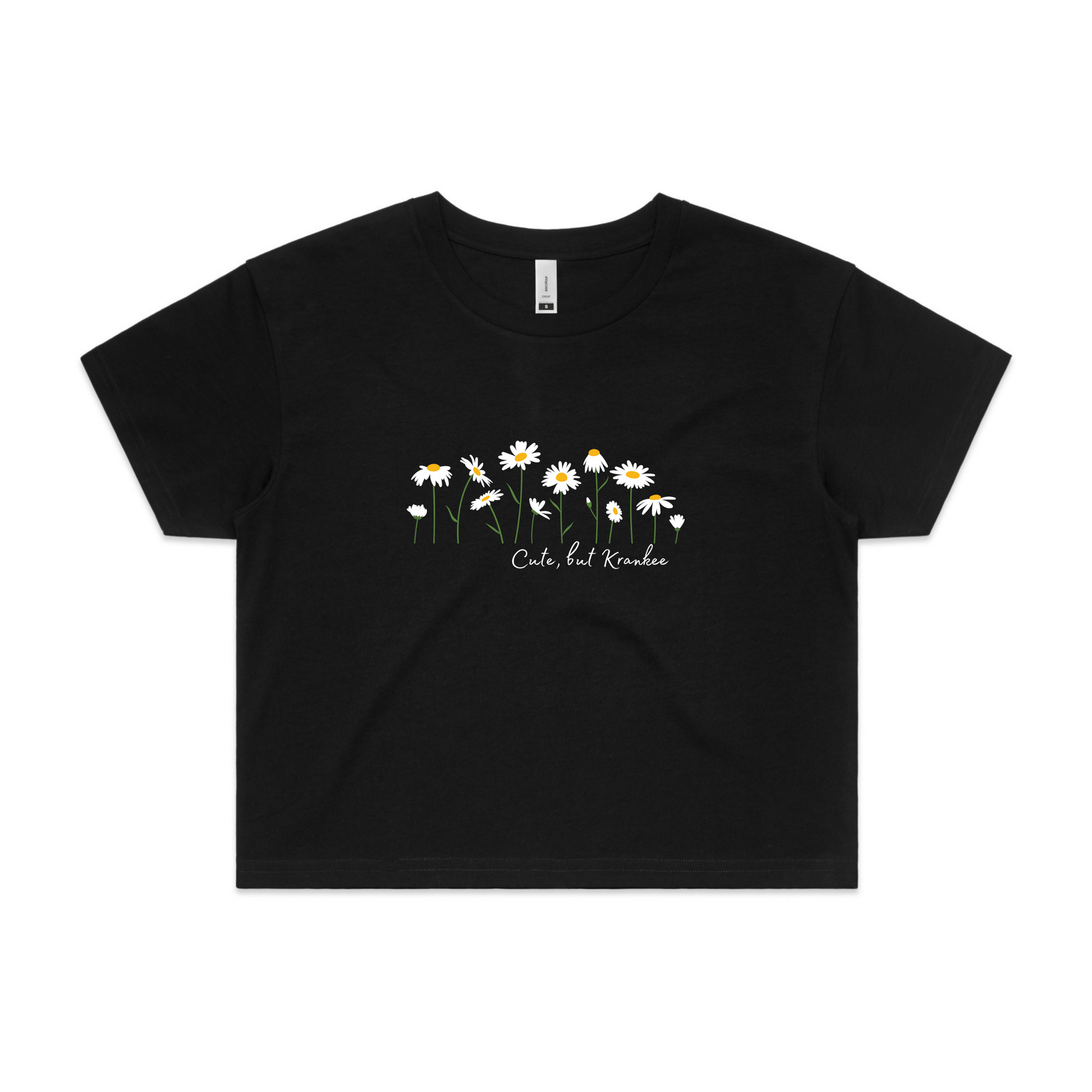 "Cute but Krankee" Daisy design on the front, with nothing on the back.