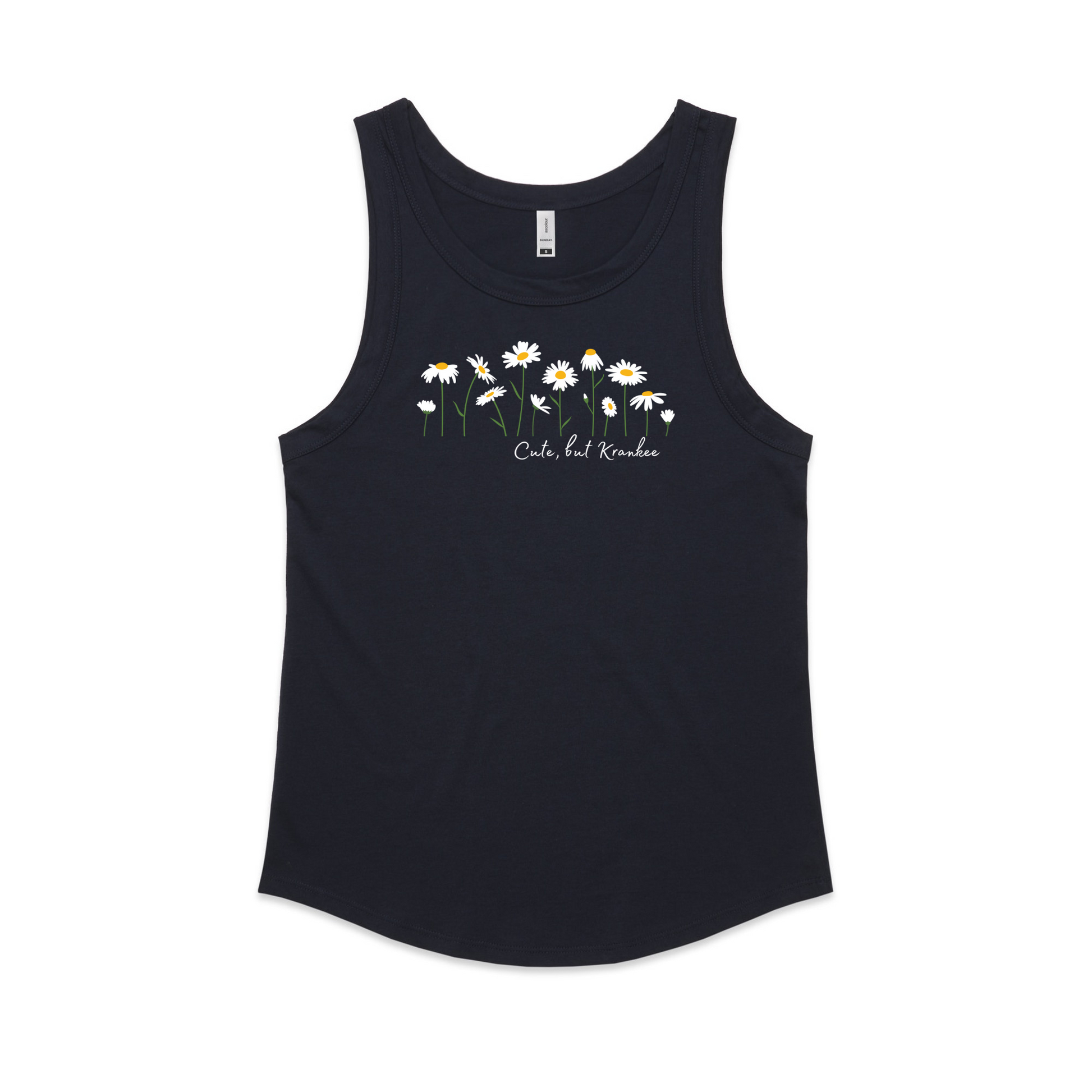 "Cute but Krankee" Daisy design on the front, with nothing on the back.