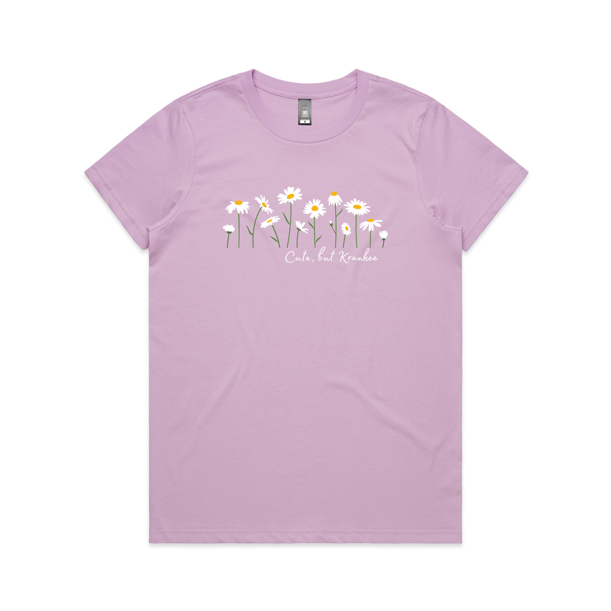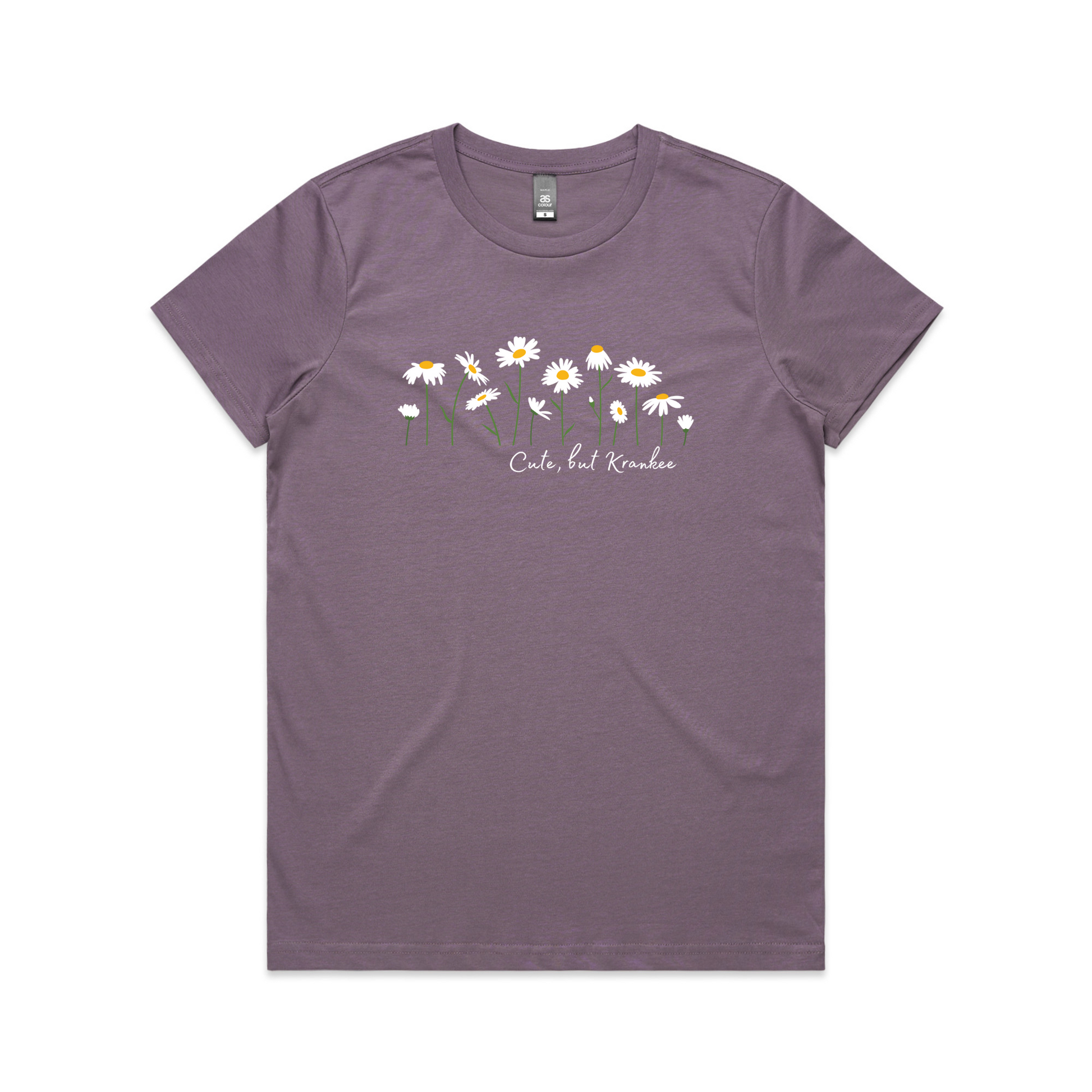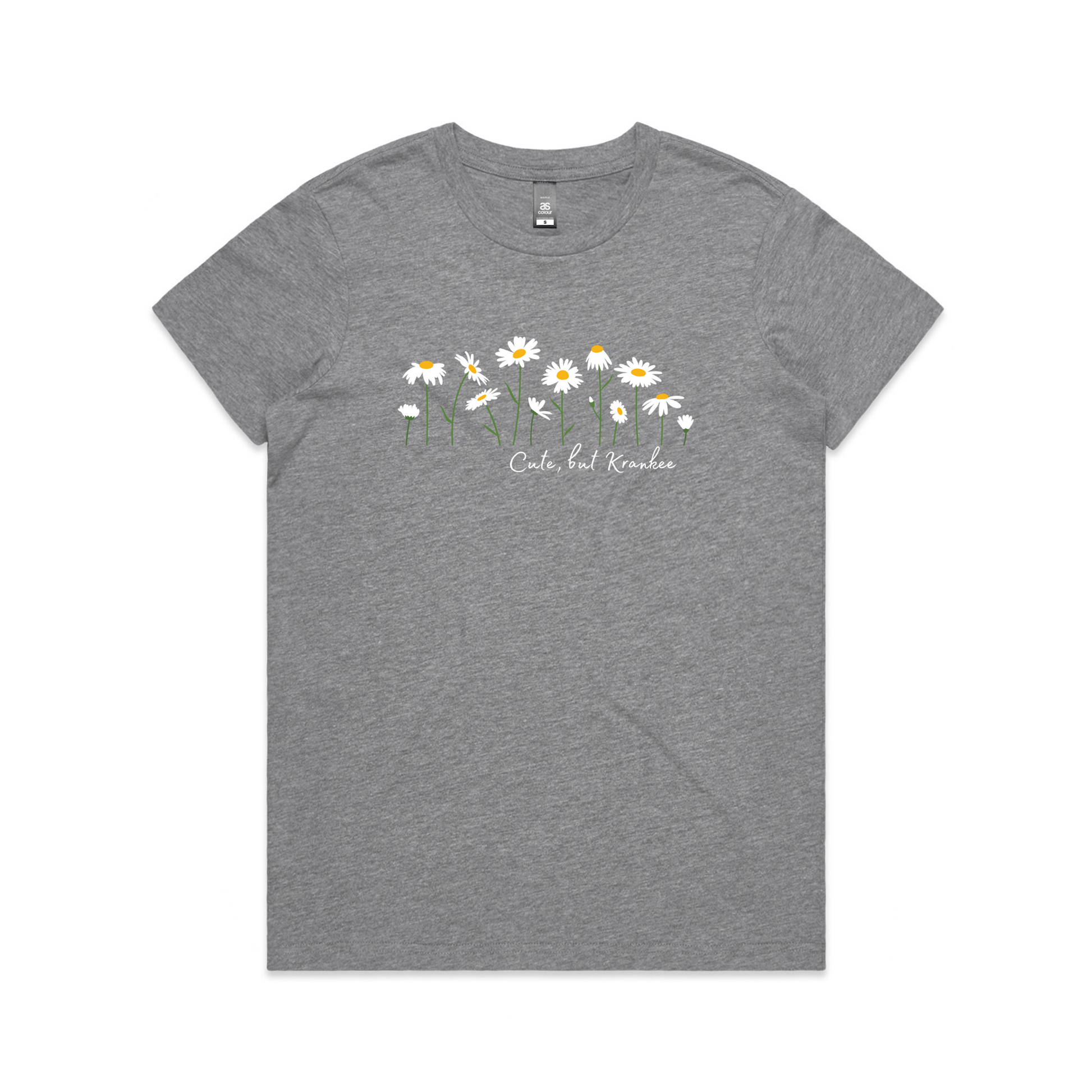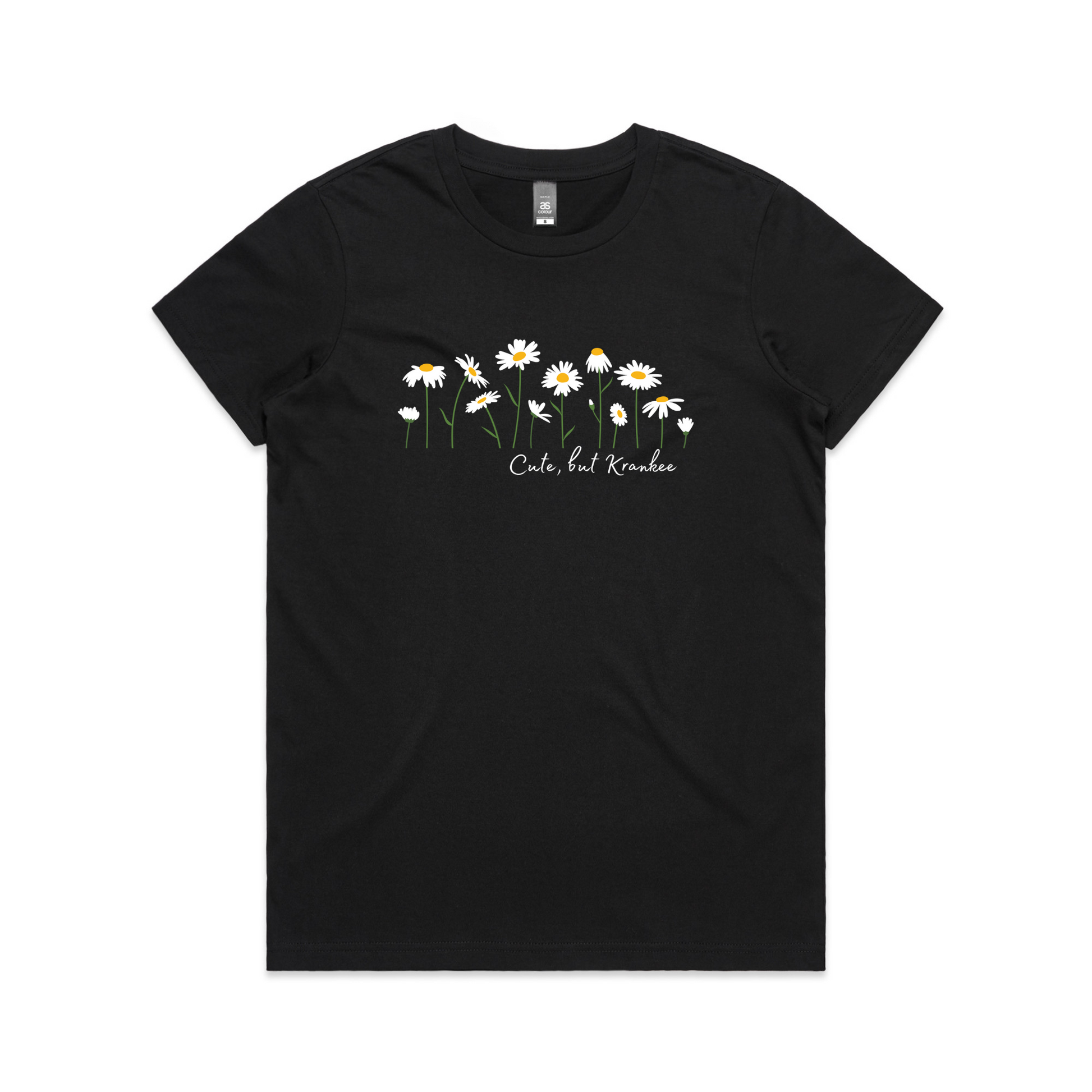 "Cute but Krankee" Daisy design on the front, with nothing on the back.