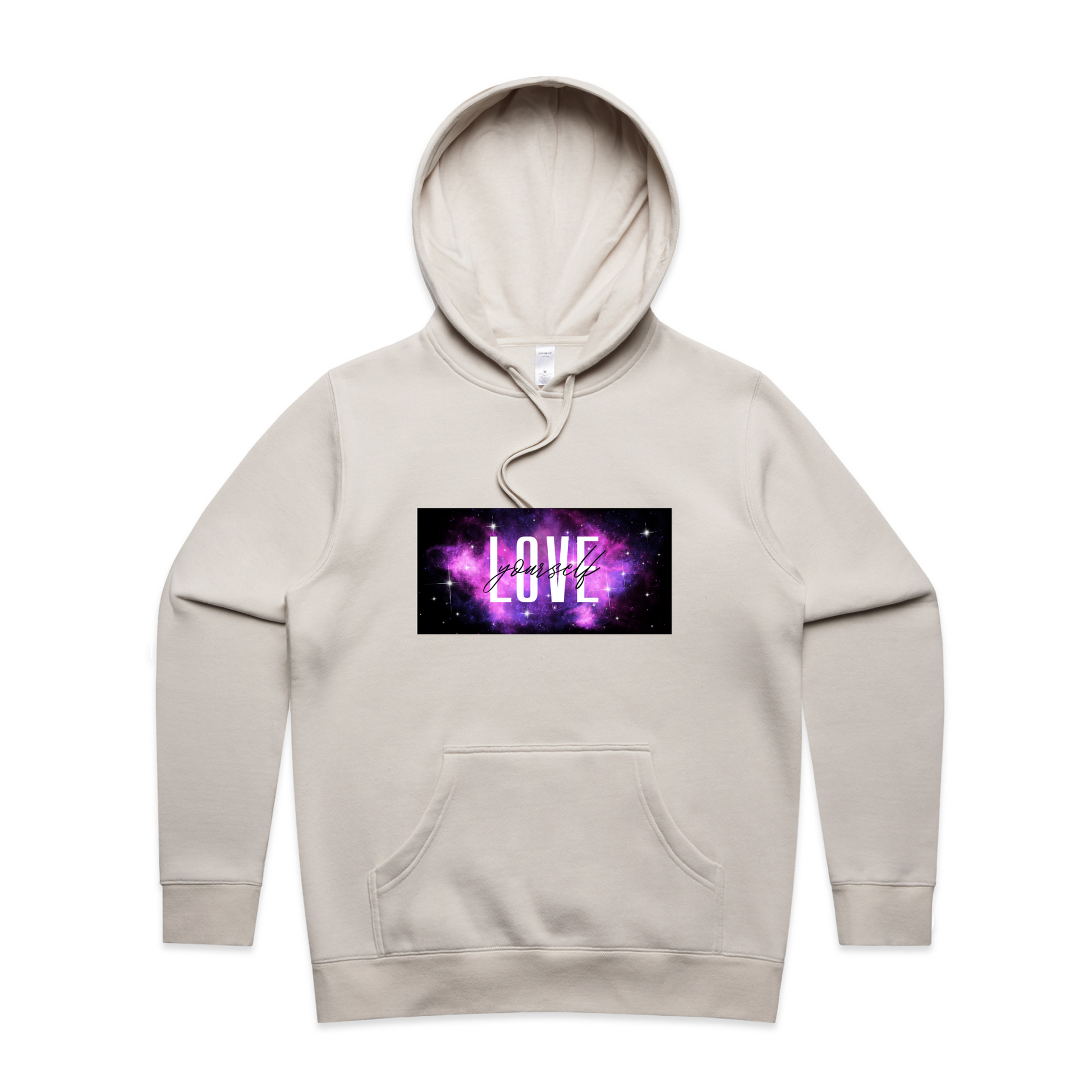 Vibrant "love yourself" galaxy design on the front - nothing on the back.