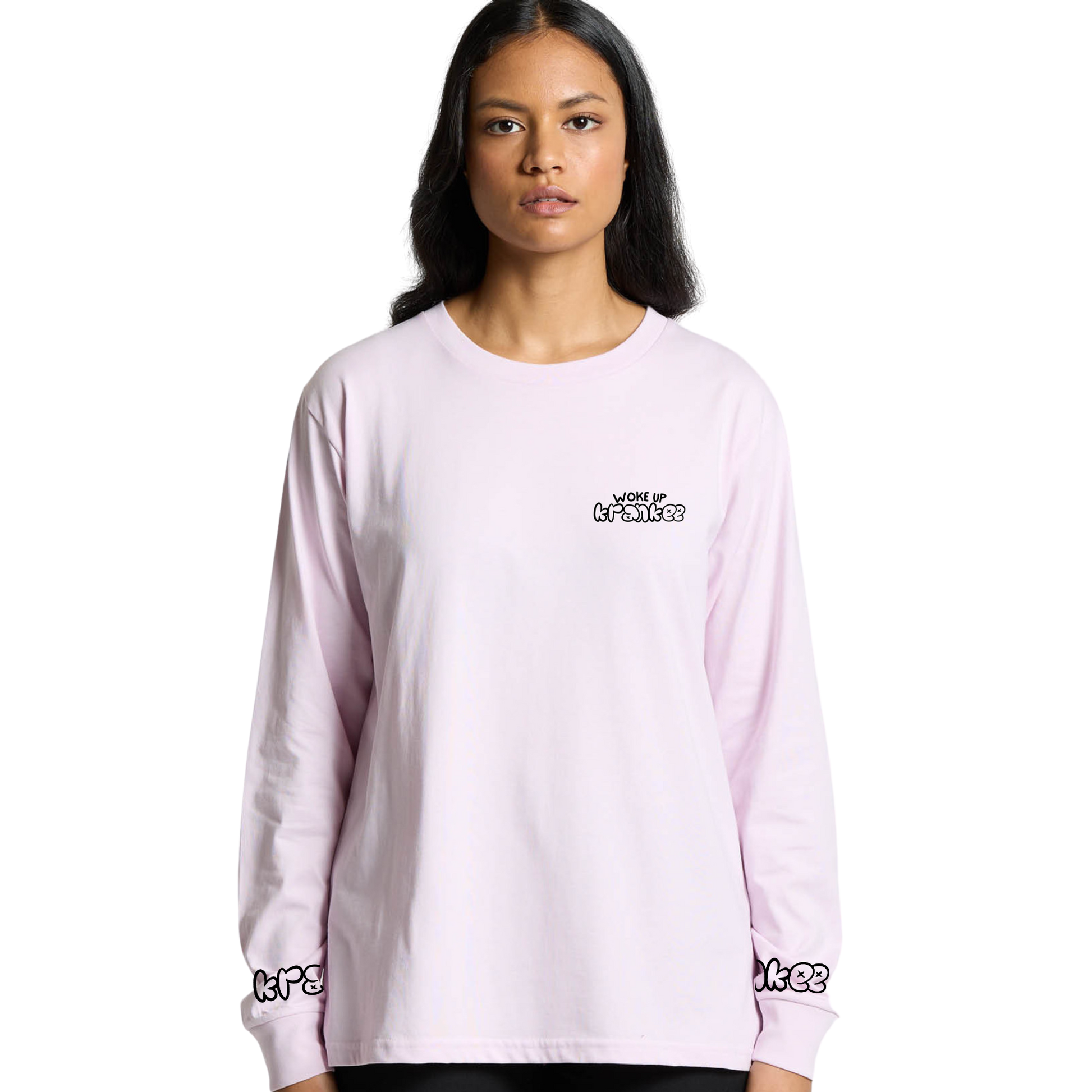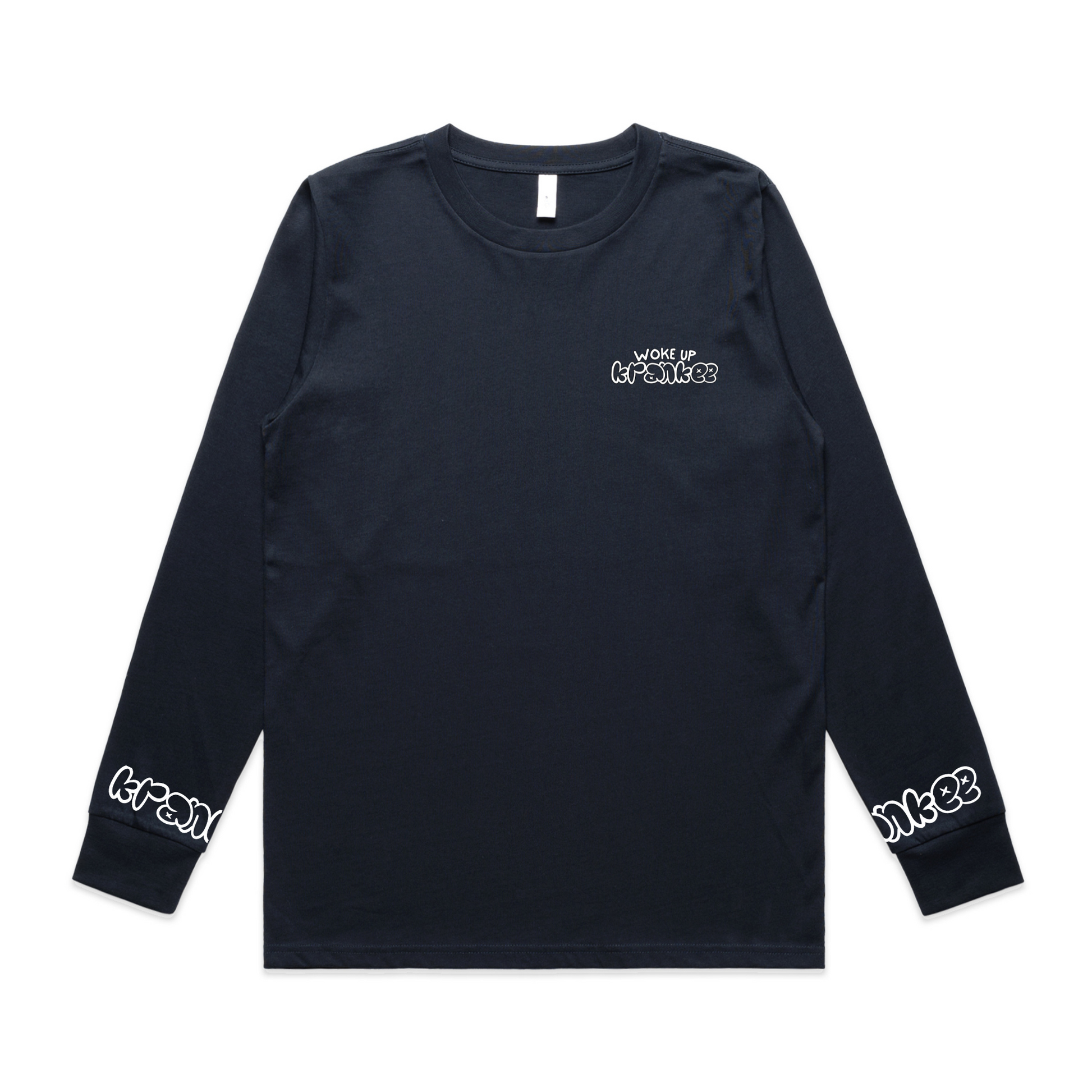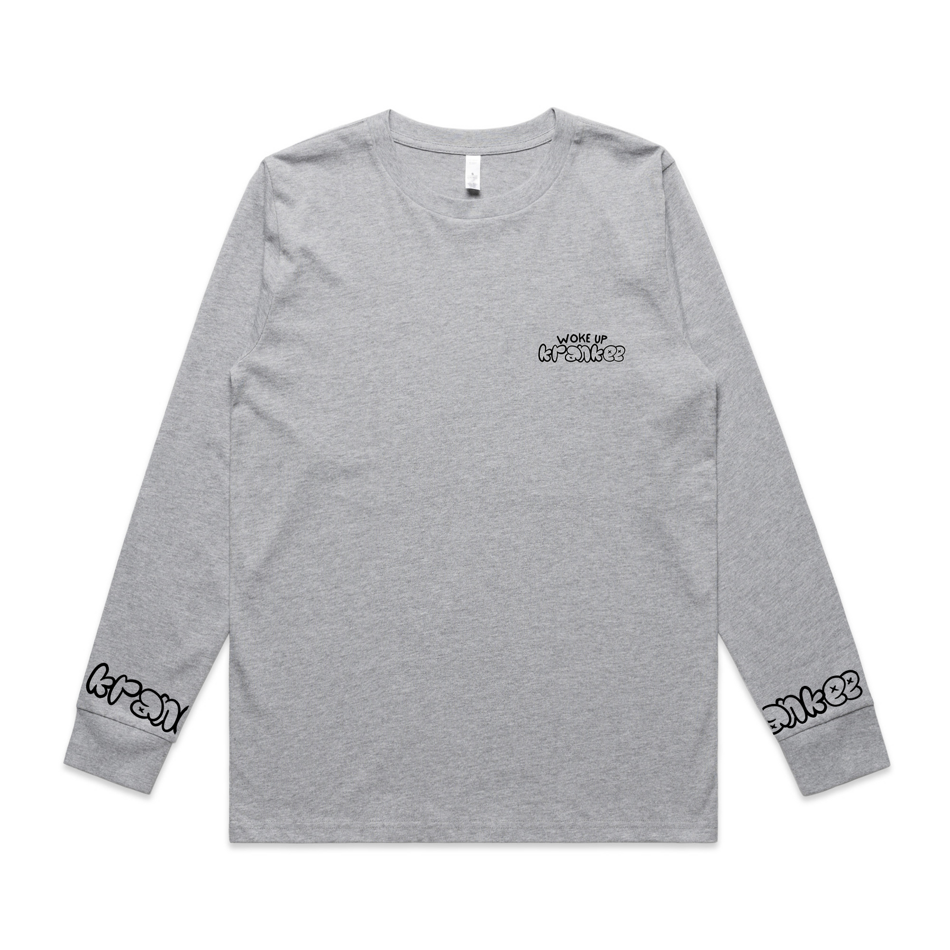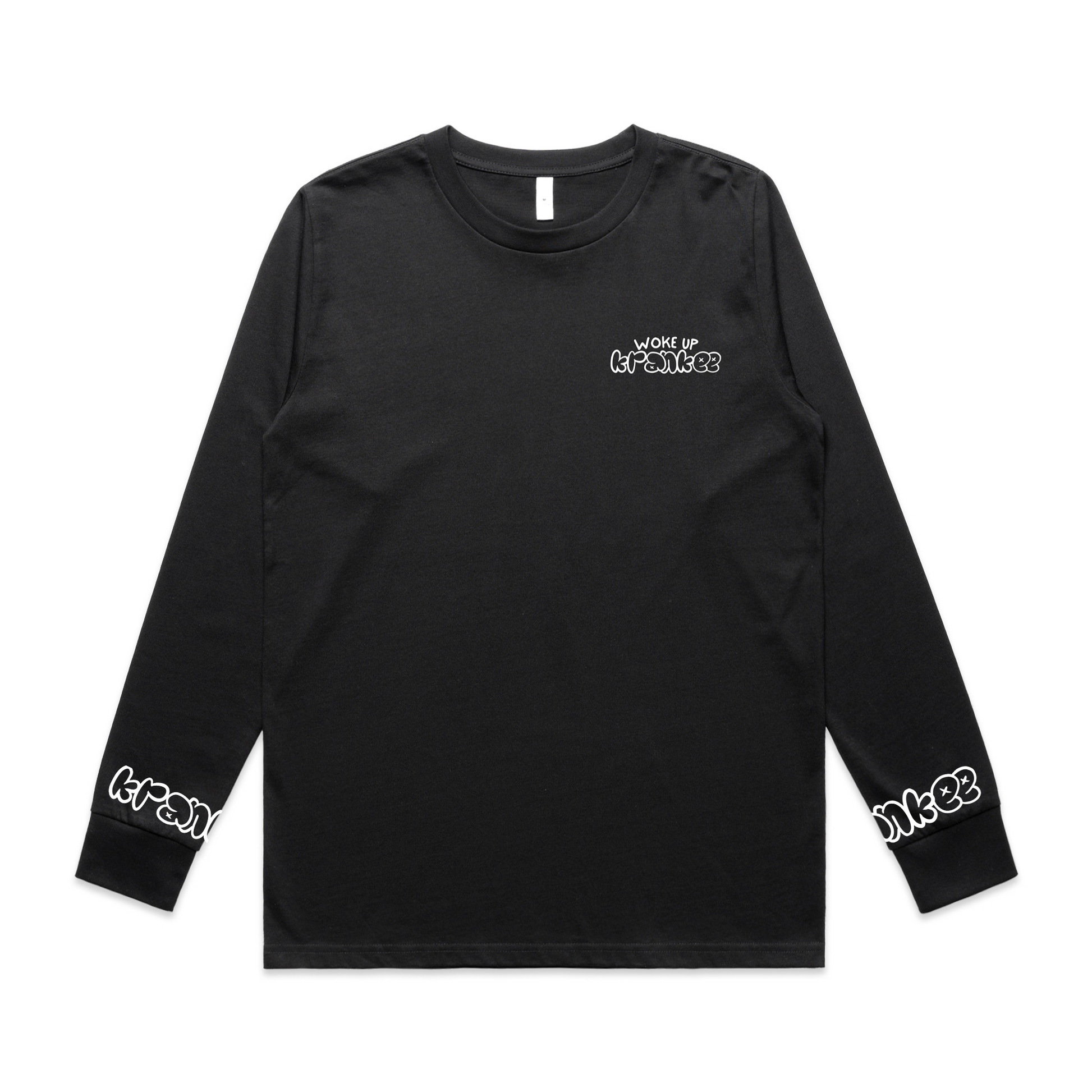 Small "Woke Up Krankee" on the front, with "Krankee" on each sleeve cuff.